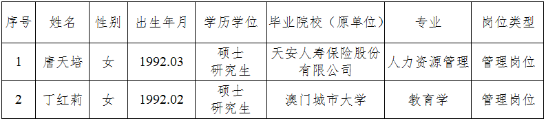 根据《ac米兰中文官方网站公开招聘教职工实施细则(试行)》及《ac米兰中文官方网站2020年度校聘人员招聘公告》的相关要求,经应聘报名、资格审查、笔试、心理测评、面试(试讲)、体检、考察、学校党委常委会审定等程序,拟录用唐天培等2人为学校校聘人员,现将拟录用人员名单予以公示。