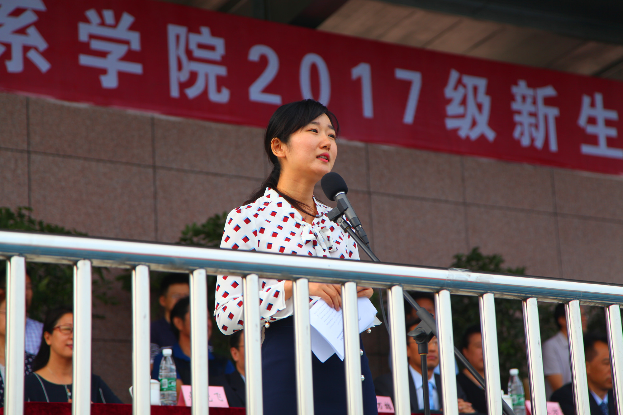 思想政治理论教学部教师李妍妍博士在发言中和同学们分享了三点学习体会:一道目标,择目标。希望同学们在大学寻找自己专属的“技能与装备”;二曰读书,读经典。希望同学们在经典中探寻自己个性的“诗和远方”;三言情商,养情商。希望同学们在生活中寻访自己独有的“爱与幸福”。