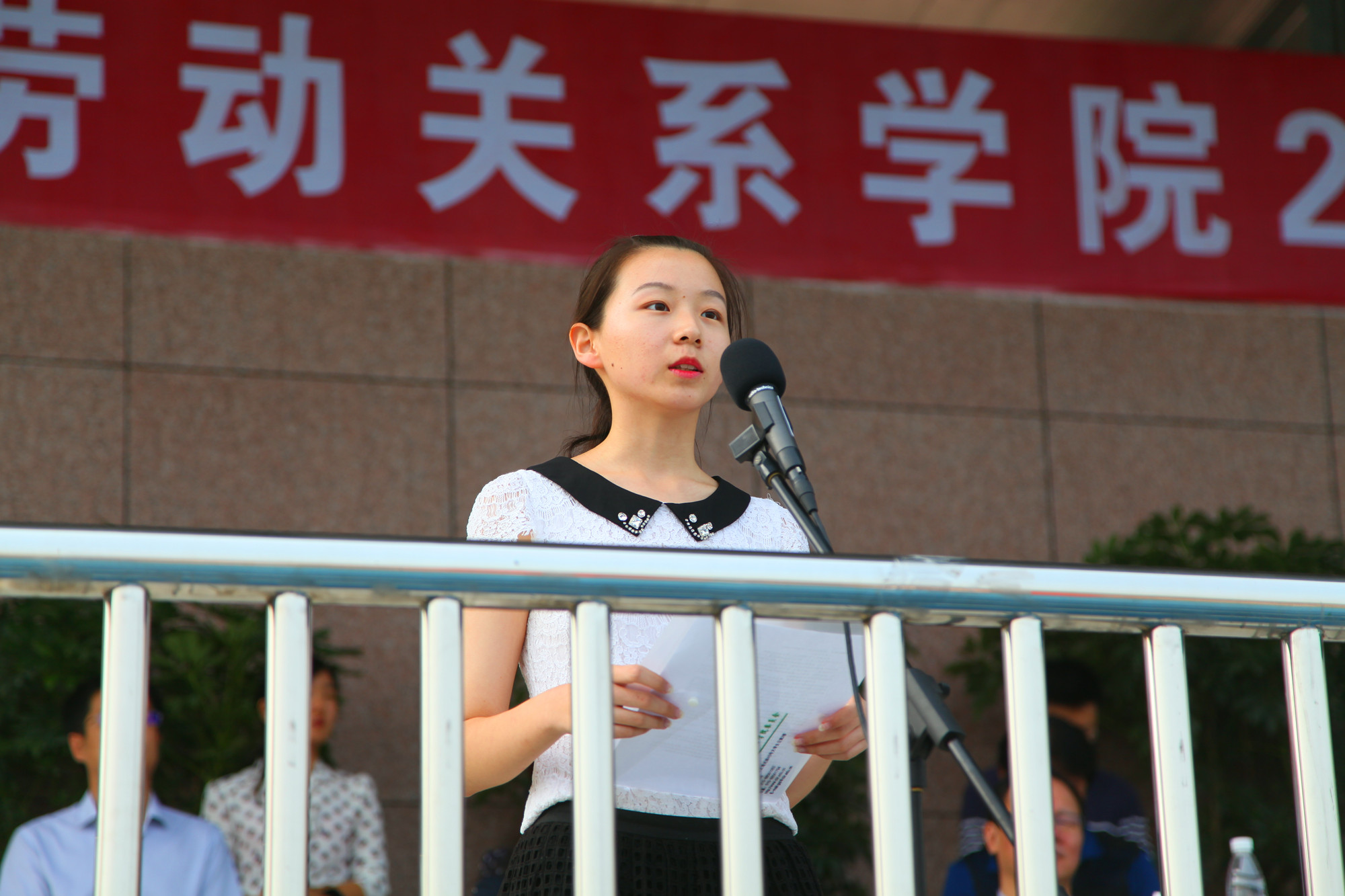 工会学院2017级社会工作专业学生白東佩代表本科新生发言,表示将拥有诚实、自信、坚持等优良品质,成长为懂感恩、有礼貌、会学习的时代中劳院人。