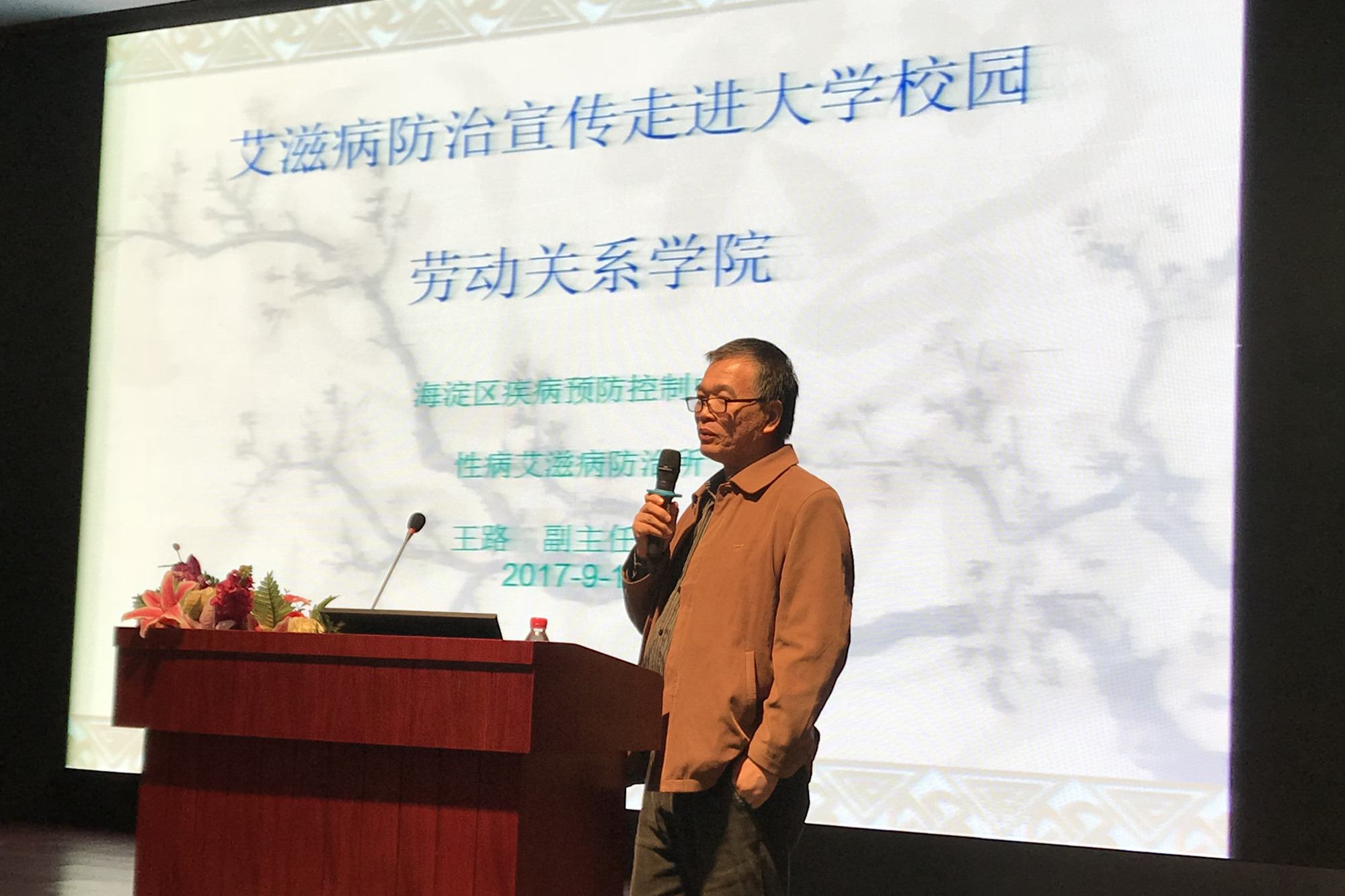 活动邀请到海淀区疾控中心副主任医师王路和北京市佑安医院主任医师李在村两位艾滋病防控专家为新生讲解防艾知识。李在村主任就艾滋病的流行病学、诊断、临床表现及治疗等方面做了详细描述,王路主任结合工作中的真实案例进一步分析了艾滋病的传播途径、预防方法,并就如何更好地维护自身健康权益等方面为大家答疑解惑。