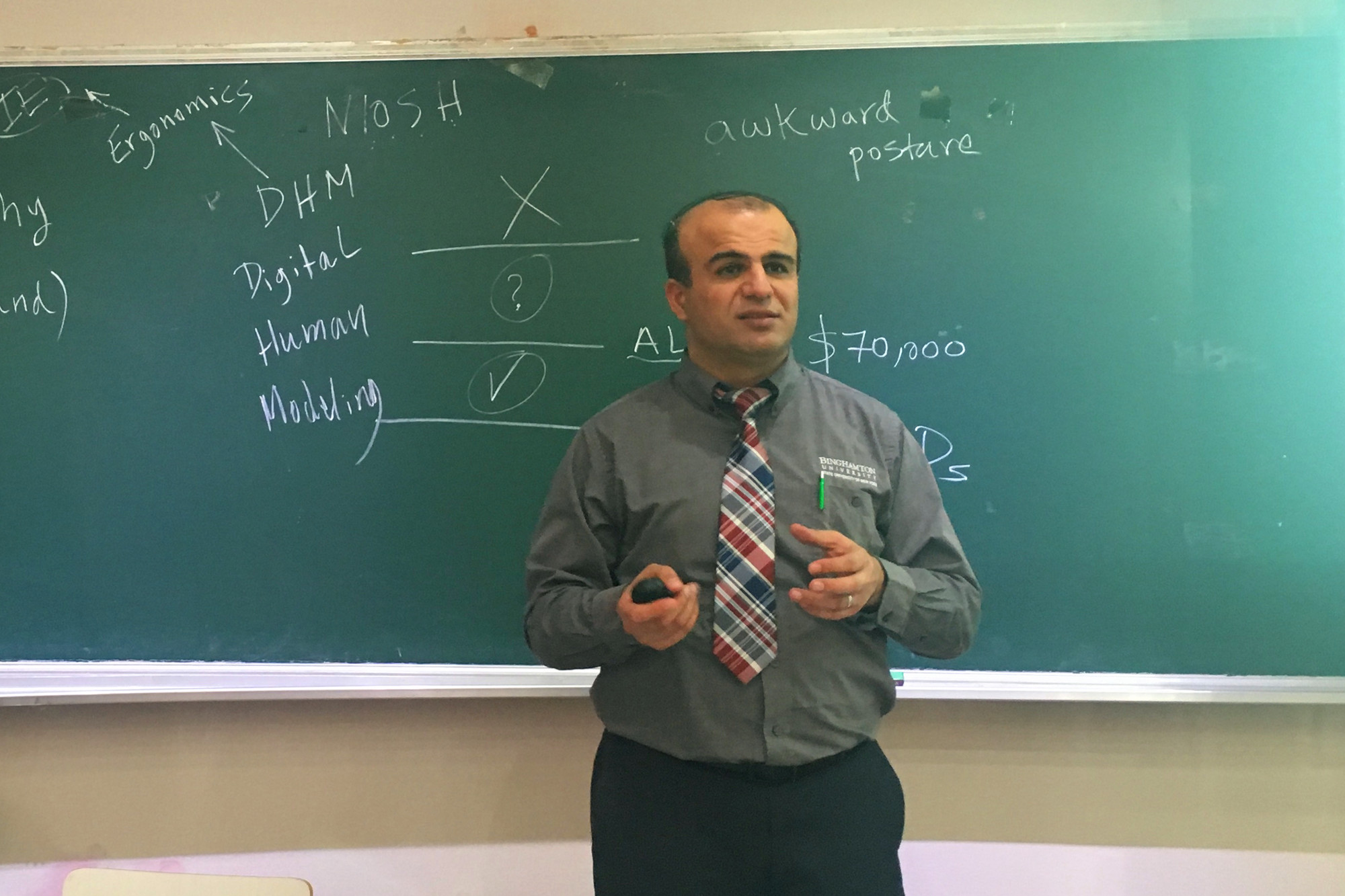 随后,哈撒尼教授还与安全工程系2014、2015级学生进行了交流。他向同学们全面介绍了滨汉姆顿大学工业工程学院的课程体系设置、教学科研成果、学习环境等情况,并特别介绍了他在安全人机工程(工效学)及健康监护方面的教学科研情况。