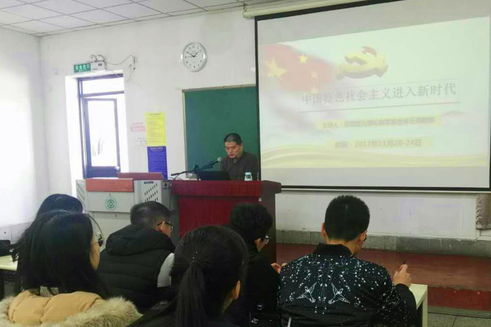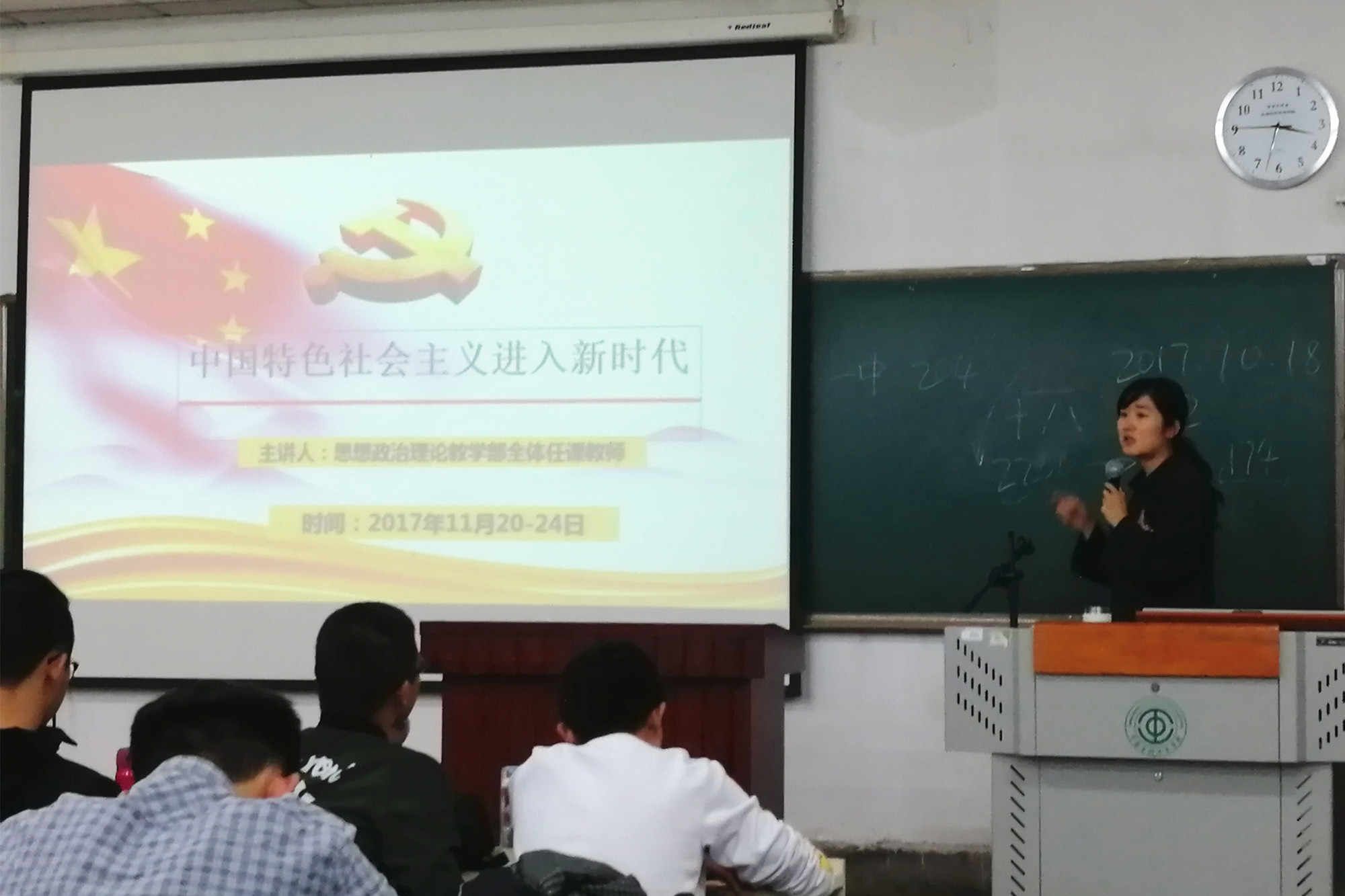 11月13日、14日,ac米兰思想政治理论教学部的老师们以《中国特色社会主义进入新时代》为题,同上一堂课,宣讲党的十九大精神,为涿州校区学生上了一堂特殊的思想政治理论课。