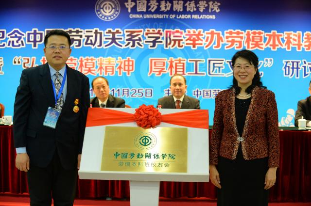 副校长刘丽红和劳模本科班校友会会长郑贵有共同为劳模本科班校友会揭牌。劳模本科班校友会的成立,将更广泛地团结校友、服务校友,促进学校更好地开展劳模本科教育。党委书记屈增国代表学校接受劳模本科班全体校友赠送的纪念品。一副“千秋伟业 与校同耕 崇尚劳动 铭记师恩”书法作品表达了劳模学员对母校多年培育的感谢之情。
