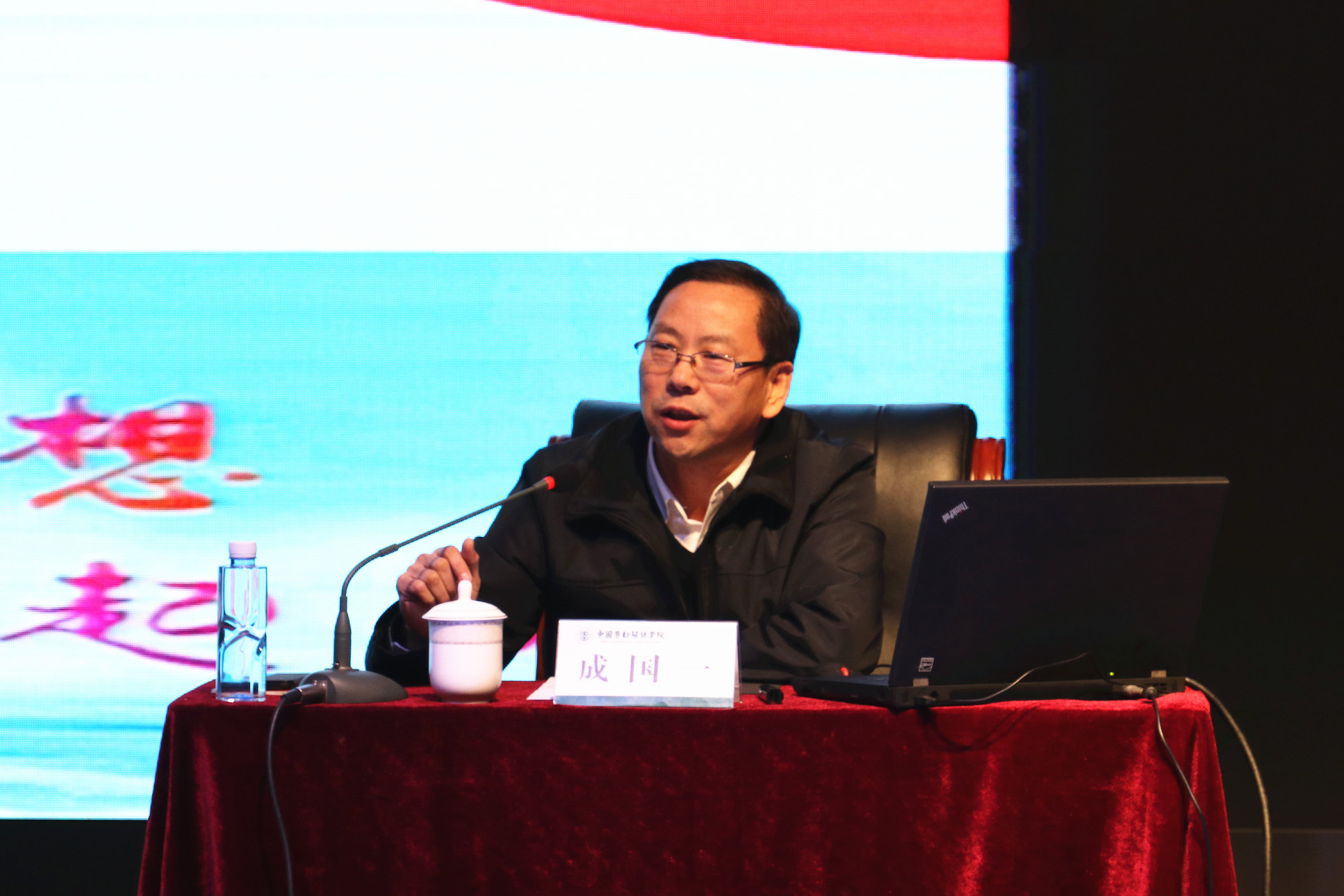 成国一副书记以《坚定理想信念 牢记使命重托 在实现中国梦的生动实践中放飞青春梦想》为题给团学骨干们做了一场精彩的专题讲座。成副书记从“学、树、做”三个方面讲解了如何做一名新时代合格的团学干部,并对团学干部们提出了新的标准和要求:一是要认真学习党章和党的十九大精神,强化政治素养,坚定理想信念;二是要牢固树立马克思主义青年观,牢记使命重托,明确努力方向;三是要努力做新时代合格学生干部,历练成长成才,放飞青春梦想。他勉励团学骨干为把学校建成劳动关系和工会领域国内一流、国际知名的大学,为实现中华民族伟大复兴的中国梦贡献青春力量。