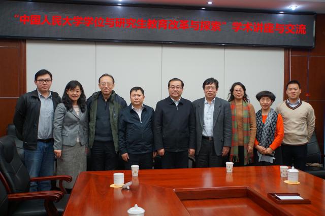 讲座中,刘凤良常务副院长从研究生教育历史、研究生规模、研究生教育师资和学科建设等方面介绍了中国人民大学研究生教育的基本情况,并分别对学术学位和专业学位研究生教育改革与探索进行了阐述。他详细说明了学术学位研究生教育改革的工作思路和重点,以及博士生教育综合改革方案、学术学位研究生培养质量保障体系、研究生招生环节、培养环节、学位论文保障机制、研究生导师核准机制的改革和实施情况,并介绍了人大特色专业学位人才培养体系和专业学位质量支撑体系的建设情况,通过研究生思想政治理论课改革,建设六个国内第一、世界一流的专业学位授权点,案例库建设,探索建立“3G+6+2”案例教学模式及数字化课程支撑服务体系等专业学位研究生教育改革实例,分享了人大研究生教育改革和探索的措施和成效。马胜利主任从研究生专业学位培养与管理办公室的具体工作方面,介绍了专业学位的改革情况以及案例教学的做法,同时就专业学位硕士培养存在的问题及改善的途径说明了自己的观点。