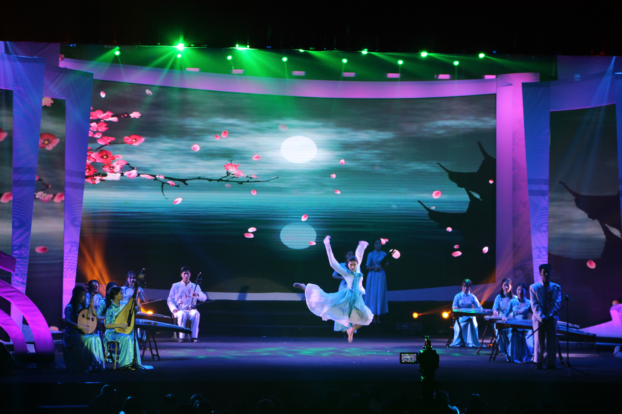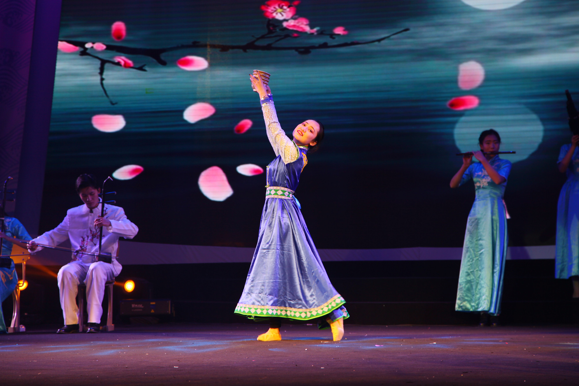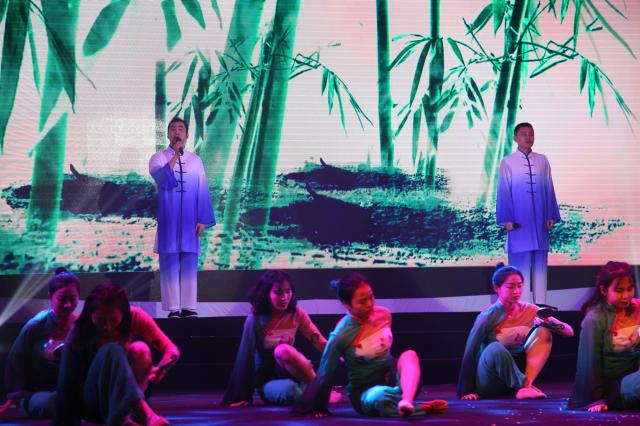 劳动关系系和大学生艺术团民乐部带来的民乐演奏《春江花月夜》,将乐器与舞蹈巧妙融合,刚柔并济。