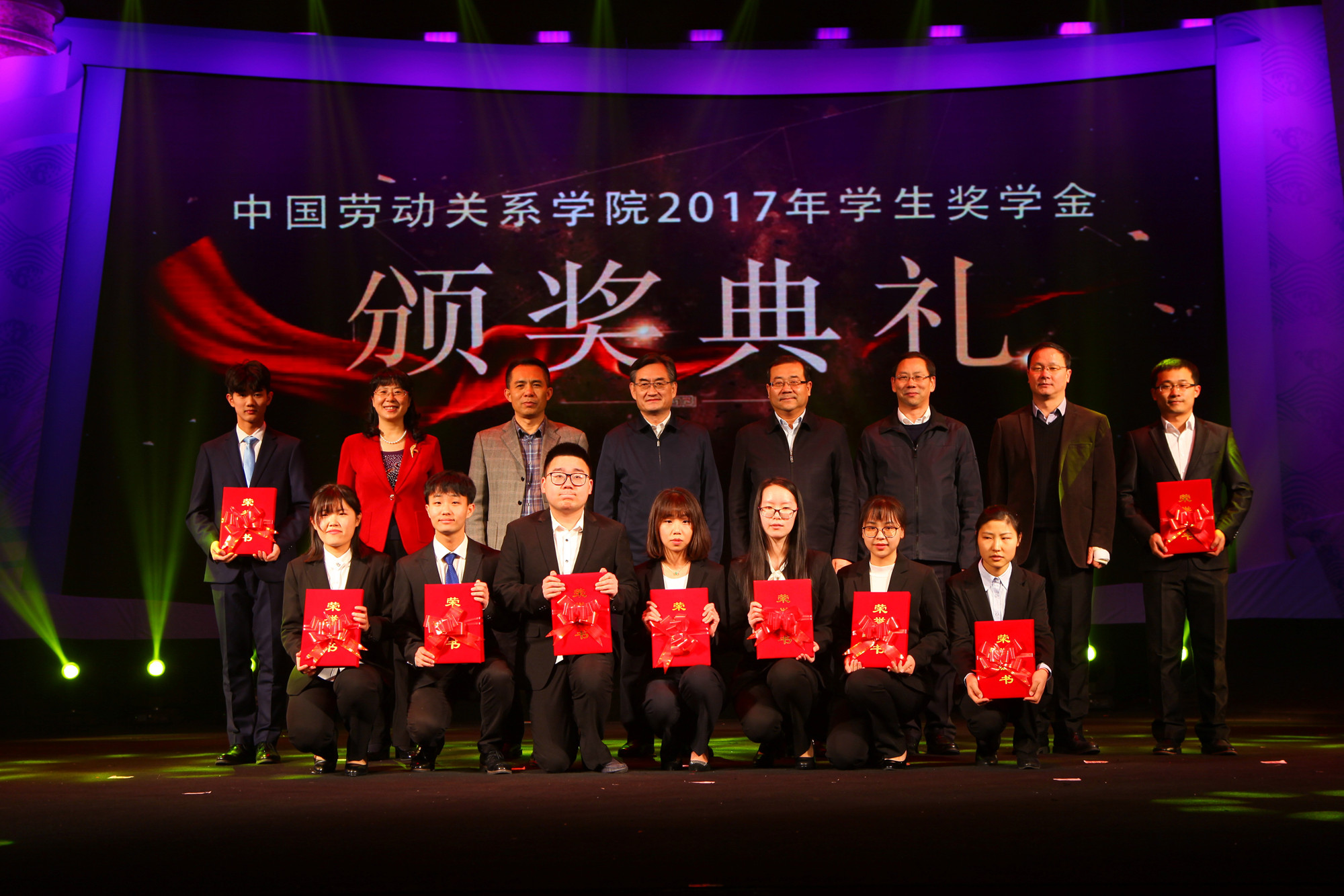 颁奖典礼上,副校长刘丽红宣读了《关于2017年度国家奖学金、国家励志奖学金、全国总工会奖学金、学校奖学金、三好学生、优秀学生干部、先进班集体的表彰通报》和《学校2017年各学科竞赛的获奖名单》。随后学校领导为获奖学生代表颁奖。