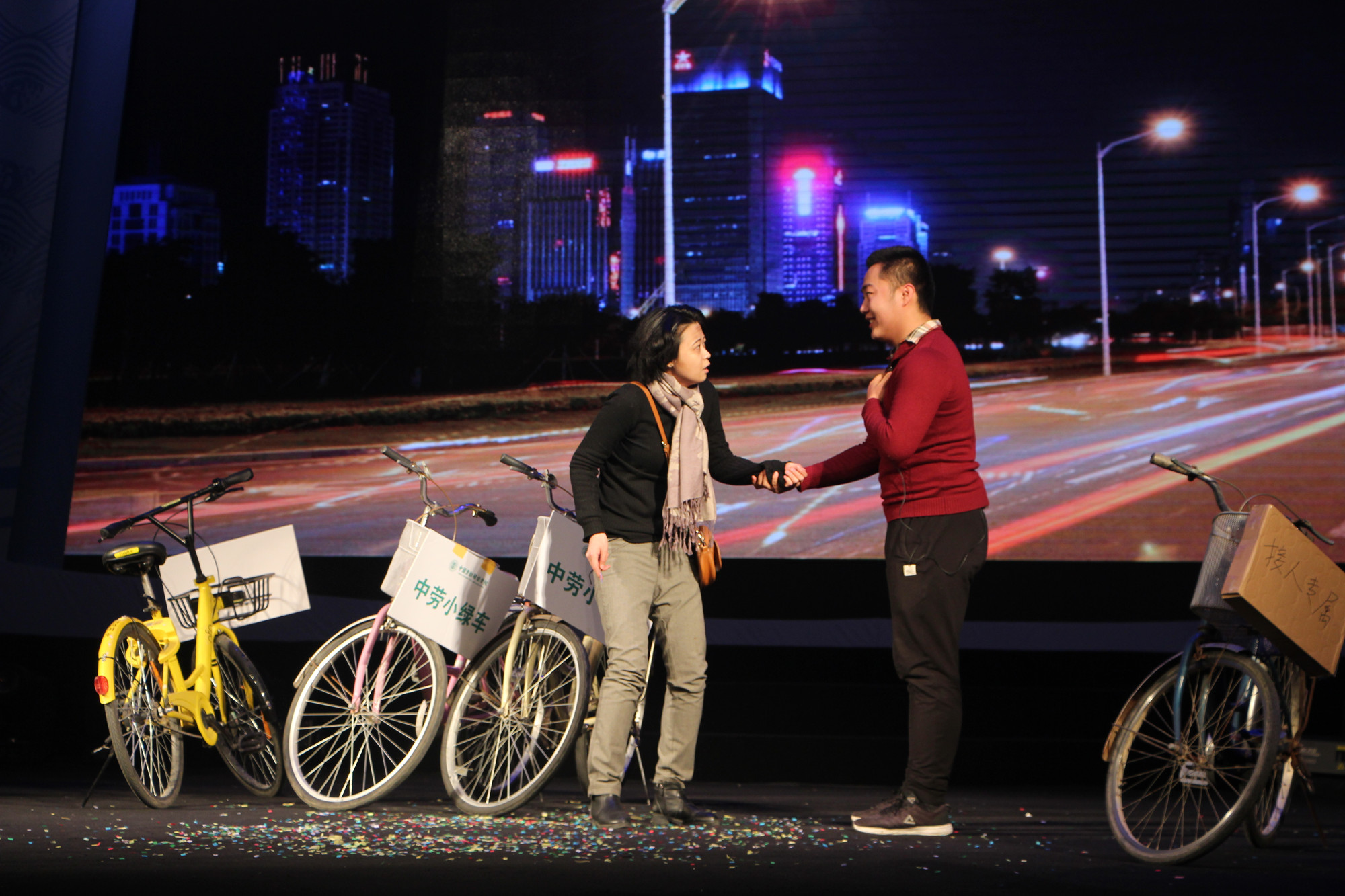 经济管理系和大学生艺术团话剧团表演的小品《共享单车风波》,通过当下流行话题给我们上了生动的一课,诠释了当代大学生应有的价值观。