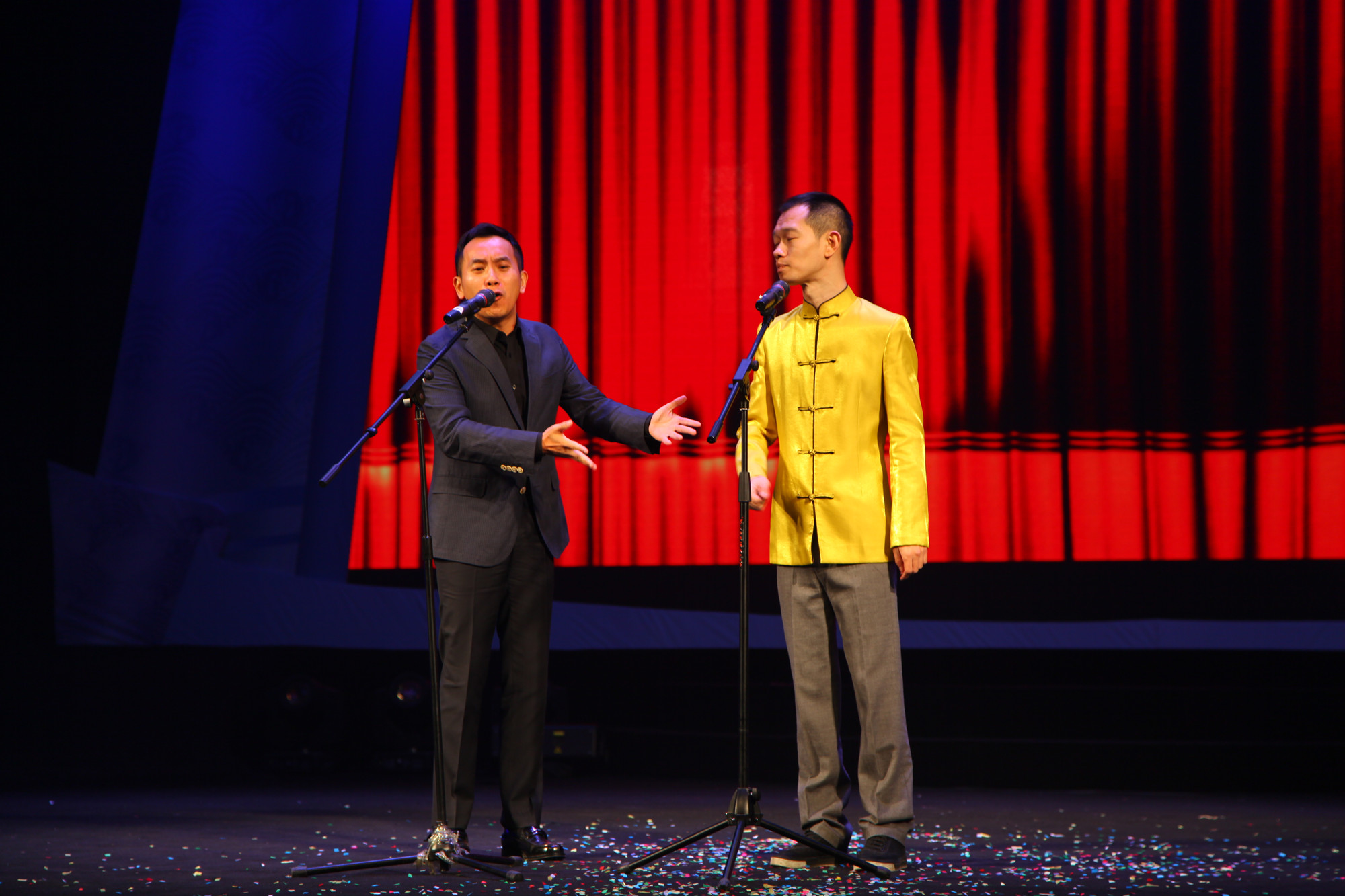 全总文工团的李培、陈印泉和侯振鹏三位艺术家分别为大家倾情演绎了魔术节目《出伞 彩云》和相声《好好说话》,他们精湛的演技,将晚会推向一个又一个高潮。