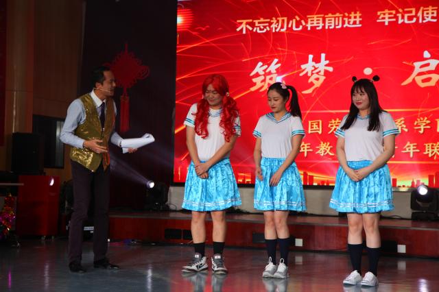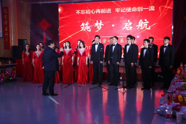 1月12日下午,北京校区教学楼508教室里灯光炫丽、节奏欢快、气氛热烈,处处洋溢着节日的喜庆。在歌曲《不忘初心》气势恢宏的合唱声中,“不忘初心再前进 牢记使命创一流——学校2018年教职工新年联欢会”拉开了序幕。学校领导刘向兵、成国一、刘玉方、刘丽红、吴万雄、郭孝实、燕晓飞、杨冬梅、姜颖与300余名教职工一起,欢聚一堂,载歌载舞,共贺新年。