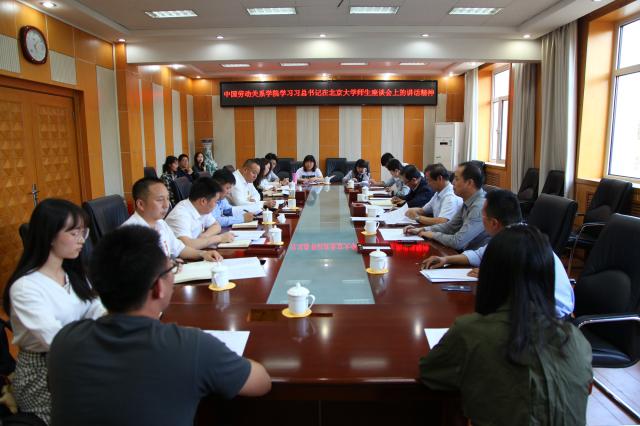 5月3日下午,学校在北京校区办公楼三层会议室召开学习习近平总书记考察北京大学重要讲话精神座谈会,集中学习习近平总书记考察北京大学重要讲话精神。党委副书记、校长刘向兵,党委副书记、纪委书记成国一,相关职能部门负责同志、劳模本科班学员代表、(本专科、研究生)学生代表、学生党员代表、团学骨干代表共计30余人参加座谈会。会议由党委副书记、纪委书记成国一主持。