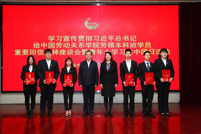 5月4日上午,学校在北京校区508教室举办学习宣传贯彻习近平总书记给劳模本科班学员回信重要精神座谈会暨青年大学习集中团日活动。党委副书记、校长刘向兵,副校长刘丽红出席活动。学校团委委员、各院(系)团组织负责人、2018年度团内评优获奖个人和集体代表以及青年学生共80余人参与活动。