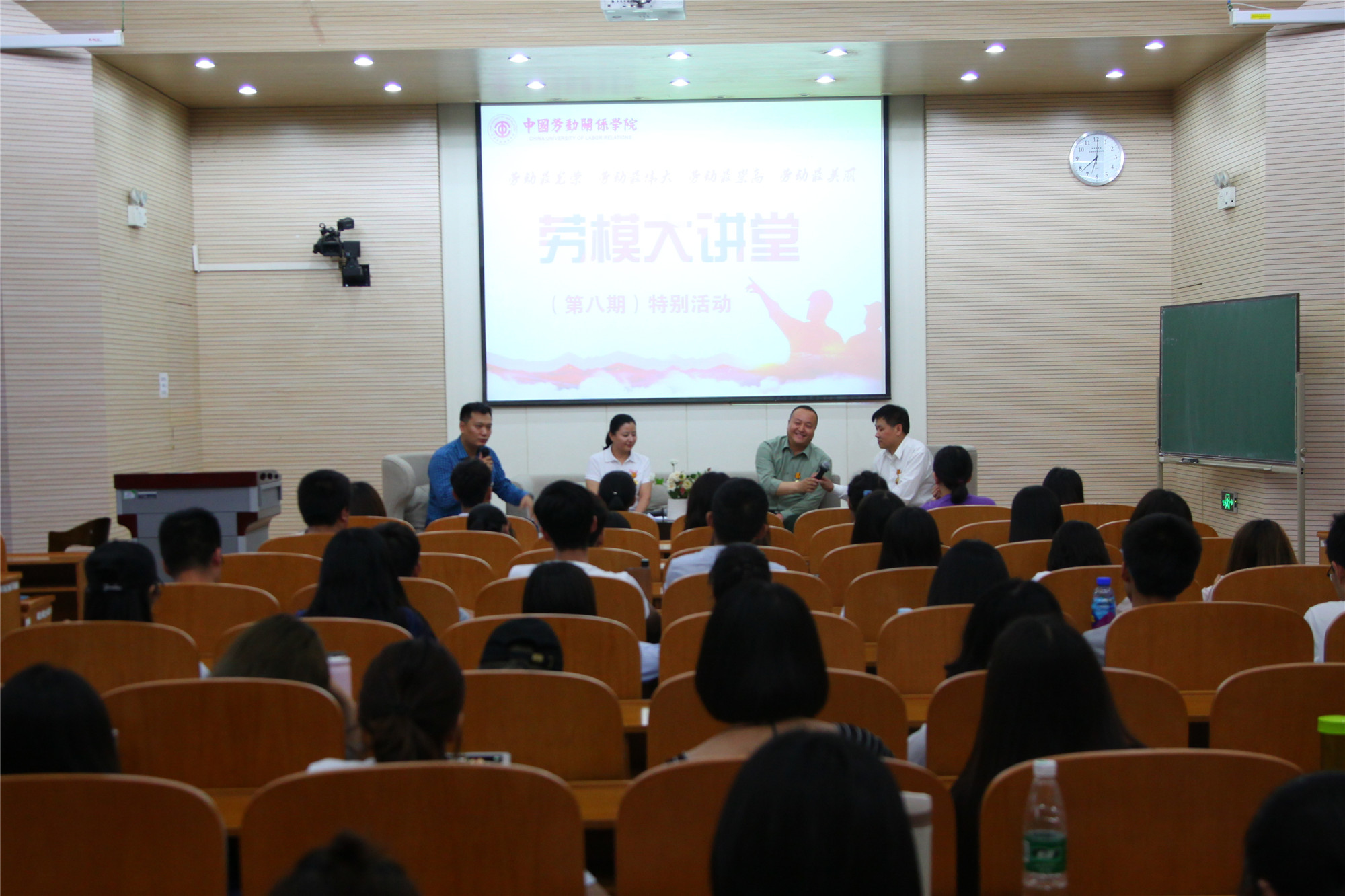 5月16日晚,一期特殊的“劳模大讲堂”在涿州校区阶八教室成功举办。活动邀请到2017级劳模本科班学员、德州阳光大姐家政服务公司经理、“全国五一劳动奖章”获得者刘俊杰,2017级劳模本科班学员、辽宁葫芦岛市爱心车队创始人、全国劳动模范、“全国五一劳动奖章”获得者张鹏,2017级劳模本科班学员、牡丹江市农村数字电影院线技术总监兼放映队长、全国劳动模范郑峰和近200名学生一起面对面交流。