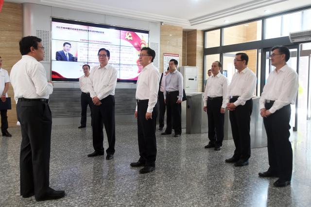 王东明主席一行首先来到校史馆,认真听取了劳模学员和在校学生的讲解,详细了解了学校的历史沿革、办学定位,仔细察看了学校在学科建设、人才培养、队伍建设、国际交流、社会服务等方面取得的成绩,并给予充分肯定。随后,王东明主席一行先后走进中国职工电化教育中心和图书馆,了解了职工驿站的有关情况,参观了期刊阅览室,听取了中国工运文库筹建情况汇报,察看了馆藏不同时期的工运书刊、手稿,并不时关心提问。在新建综合教学楼,王东明主席一行听取了学校新建综合教学楼的建设情况,了解了两校区的基础设施建设规划。