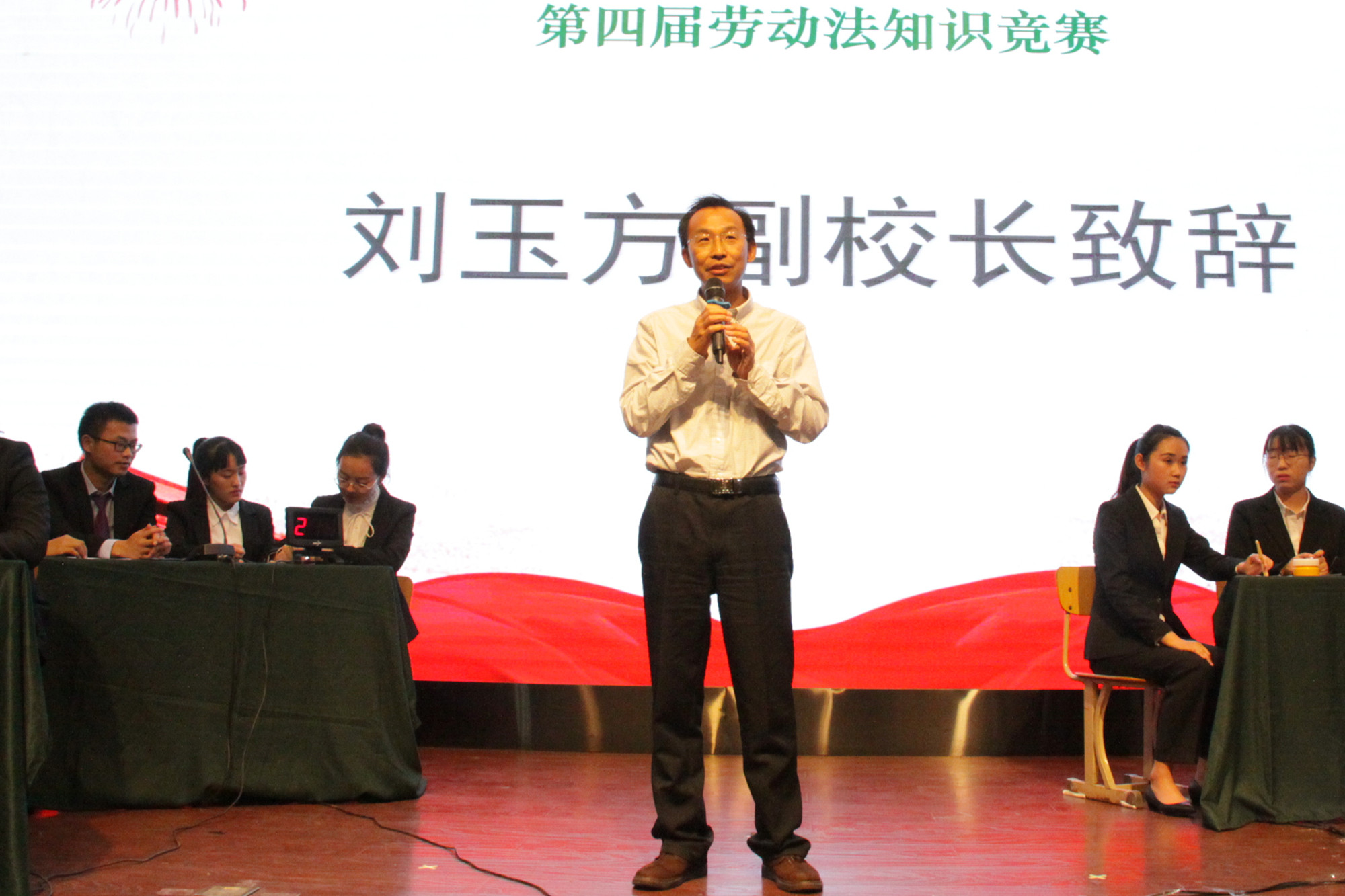 刘玉方副校长在致辞中,充分肯定了包括劳动法知识竞赛在内的一系列校园品牌活动在引领学生综合运用所学专业知识、提高实践能力,切实提高应用型人才培养实效等方面的积极意义。他指出,劳动法知识竞赛是第一课堂和第二课堂联动的有效方式,是培养学生实践能力的重要举措。他鼓励同学们积极参与,提高综合素质和能力,争做“政治素质过硬、劳动情怀深厚、专业功底扎实、实践能力突出”的新时代青年。