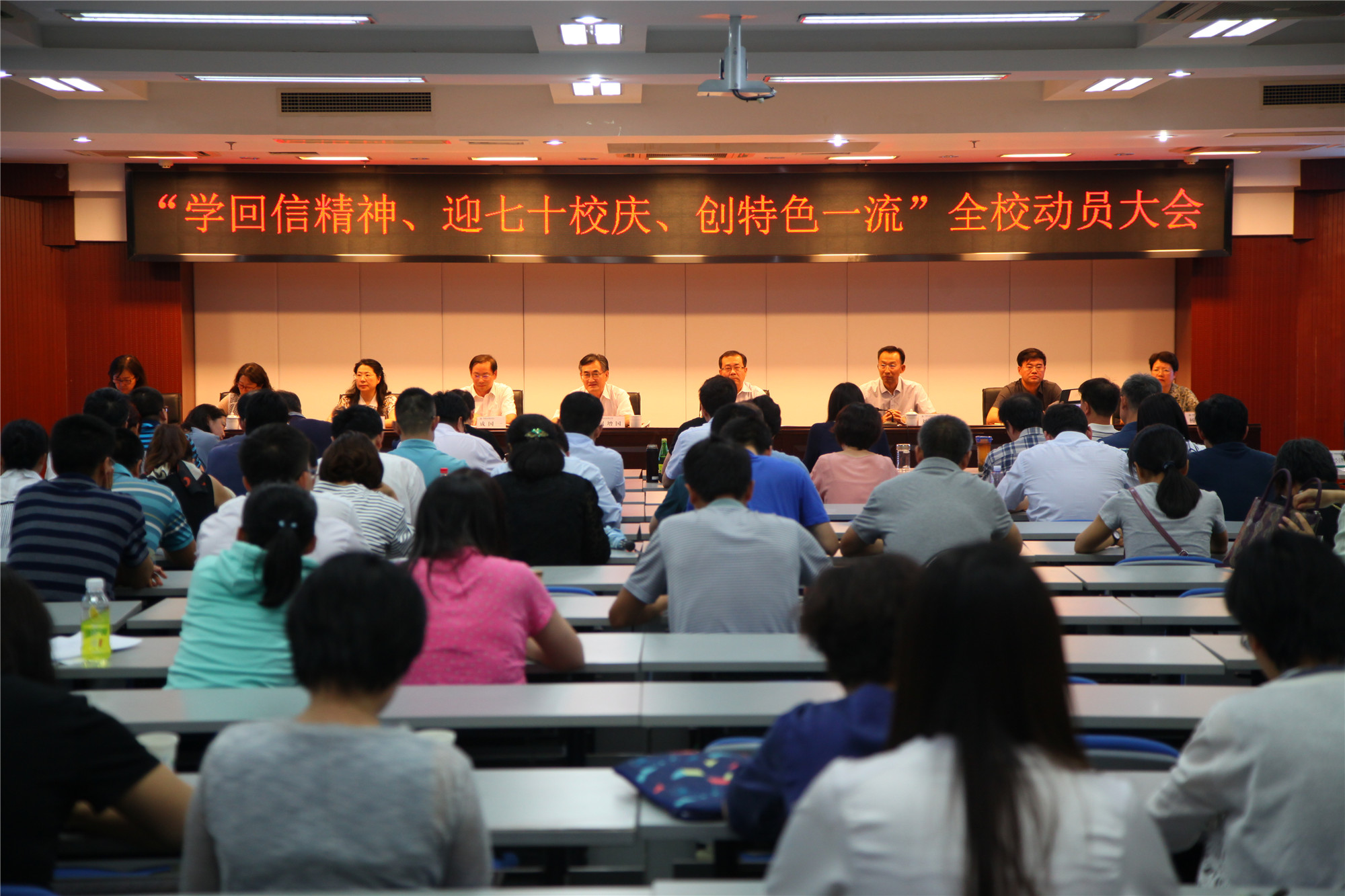 学校召开“学回信精神、迎七十校庆、创特色一流”全校动员大会