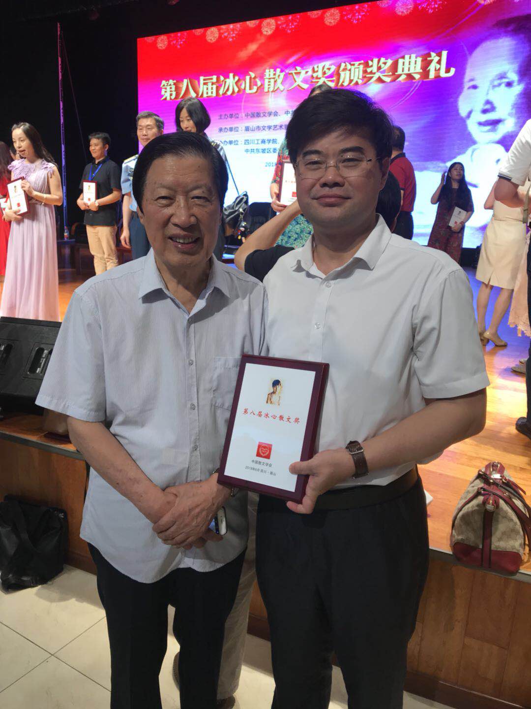 6月23日,中国散文学会第八届冰心散文奖颁奖大会在四川省眉山市隆重举行。ac米兰党委常委、中国职工电化教育中心主任、中国职工音像出版社社长郭孝实的作品《父亲的哲学》荣获冰心散文奖(2016-2017)。