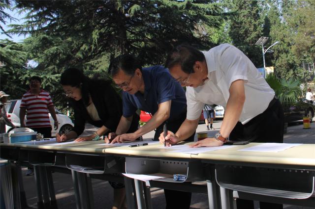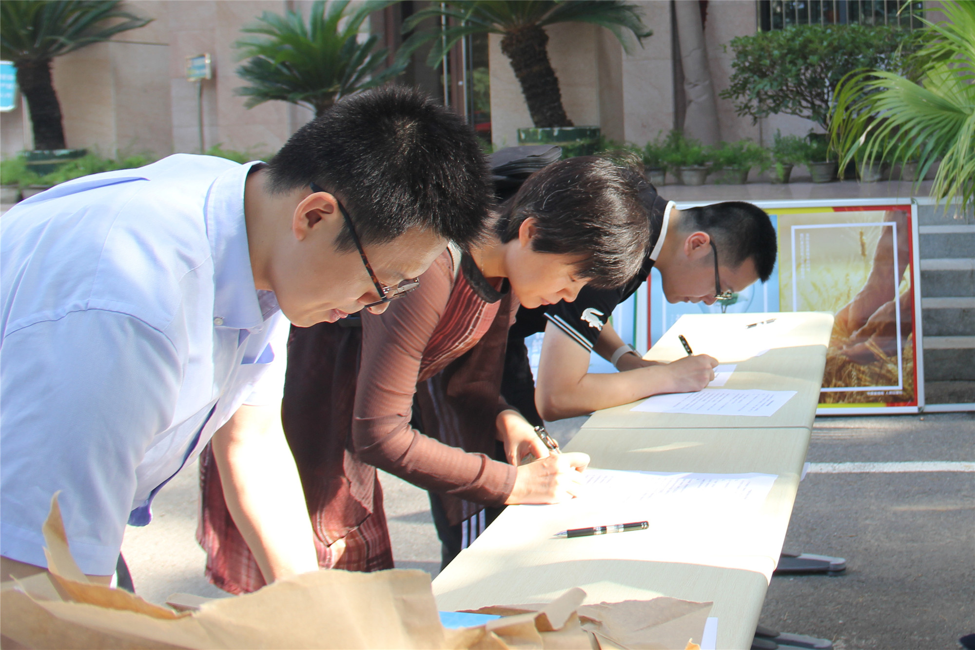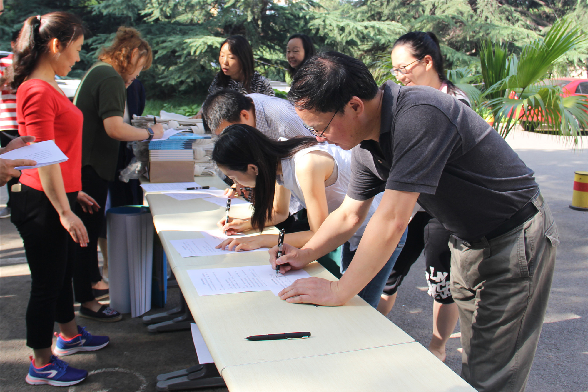 6月20日,学校在北京校区办公楼前举行“节能降耗 保卫蓝天”节能宣传现场答题活动。活动得到屈增国、刘向兵、成国一、刘丽红、吴万雄等学校领导和各部门教职员工共100余人的积极参与。