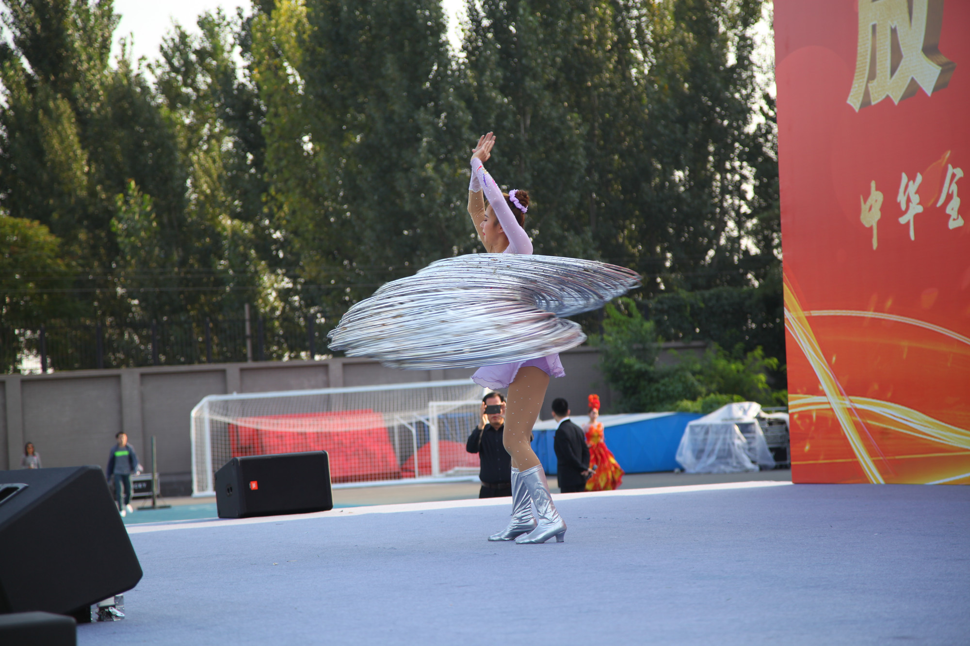 晃圈吉尼斯世界纪录保持者金琳琳为同学们表演了晃圈的高难度动作,赢得场下阵阵掌声。军训团教官带来的民乐演奏《赛马》旋律轻快,好似万马奔腾,使人身临其境。
