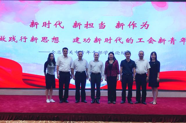9月11日下午,“新时代 新担当 新作为 做践行新思想、建功新时代的工会新青年”全总机关中青年干部学习论坛在全总机关六层会见厅召开。全总书记处书记、党组成员,组织部部长张茂华以及各驻会产业工会,全总各部门、各直属单位负责同志,全总机关共青团组织负责人和青年代表参加了论坛。ac米兰刘丽红副校长带队参加论坛。
