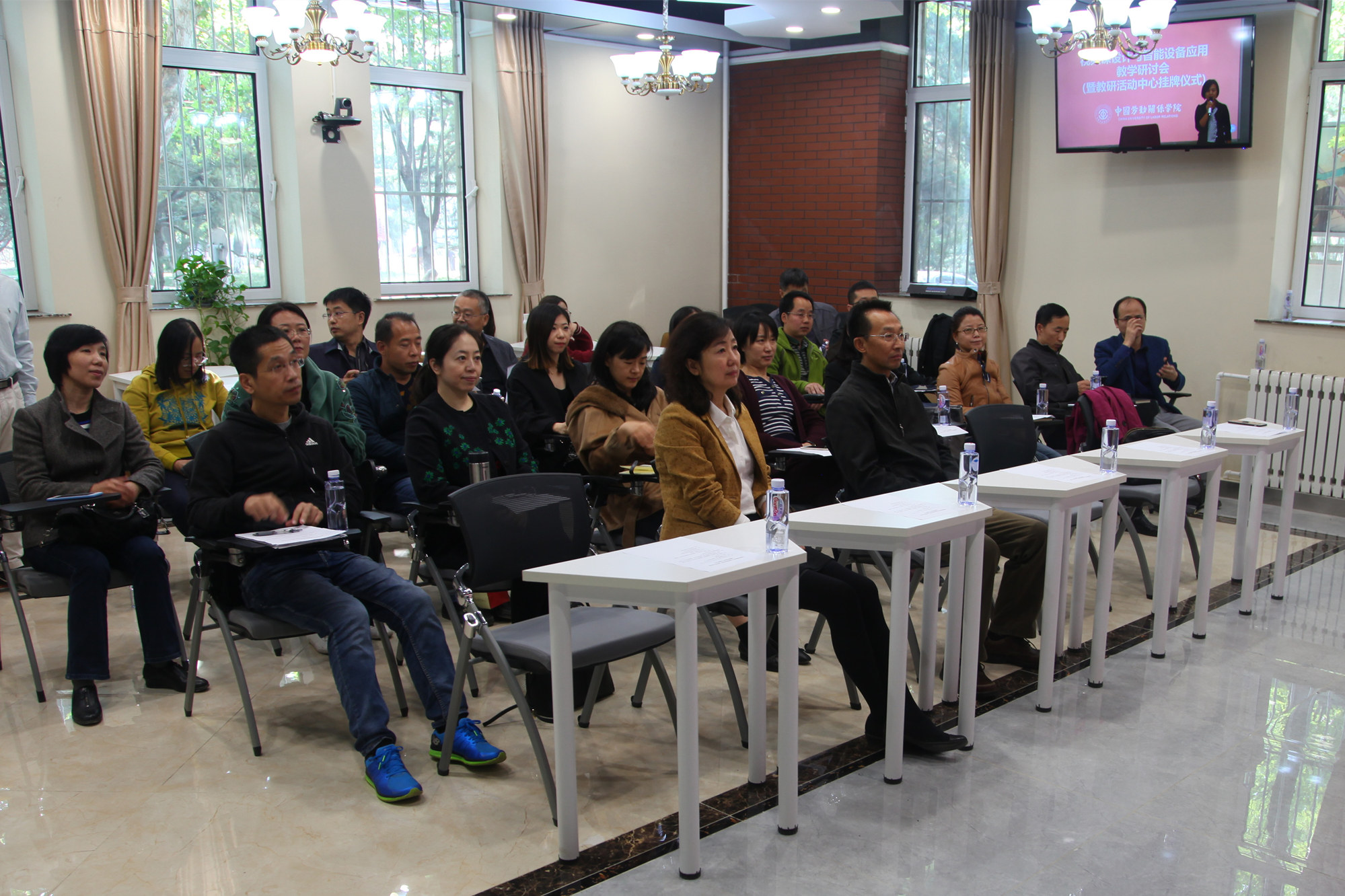 会上,刘玉方副校长和姜颖处长共同为教研活动中心揭牌。姜颖处长向与会教师详细介绍了教研活动中心的功能,并表示,中心既是教师举办教研活动的家园,也是教师使用智能化设备实现授课、录播、直播和互动的最佳场所。设备技术人员就在线课程的制作及中心智能设备的应用等方面,对参会教师进行了现场培训和演示。参会教师踊跃参与了智能设备的现场试用,并就视频课程制作的相关问题进行了交流。