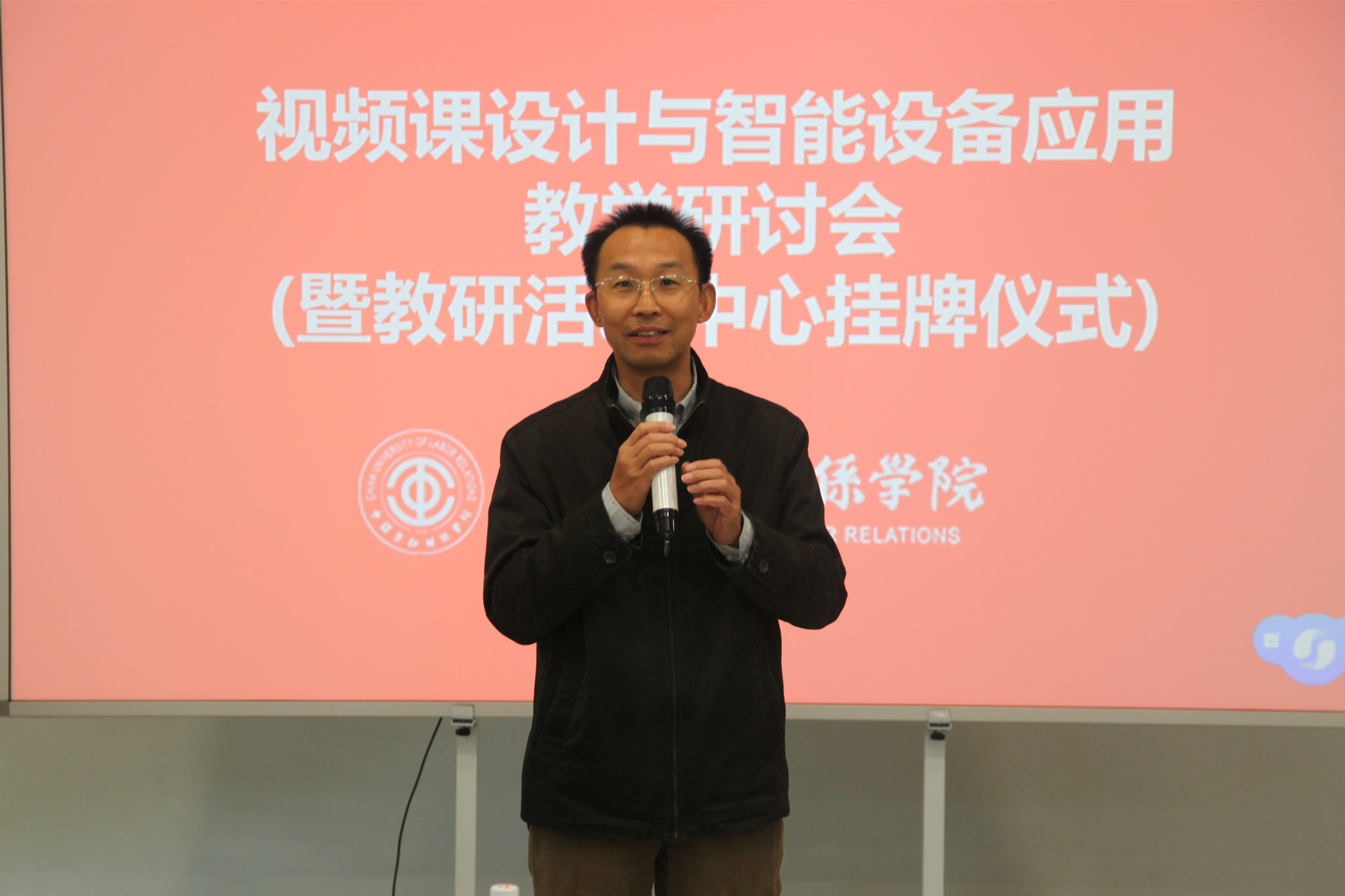 10月19日下午,学校“视频课设计与智能设备应用”教学研讨会暨教研活动中心挂牌仪式在教学楼102教室举办。副校长刘玉方,党委常委、教务处处长(兼)姜颖出席会议,各院(系、部)教学副主任、教研室主任,2018年课程建设立项项目负责人及教务处有关工作人员共30余人参加了会议。