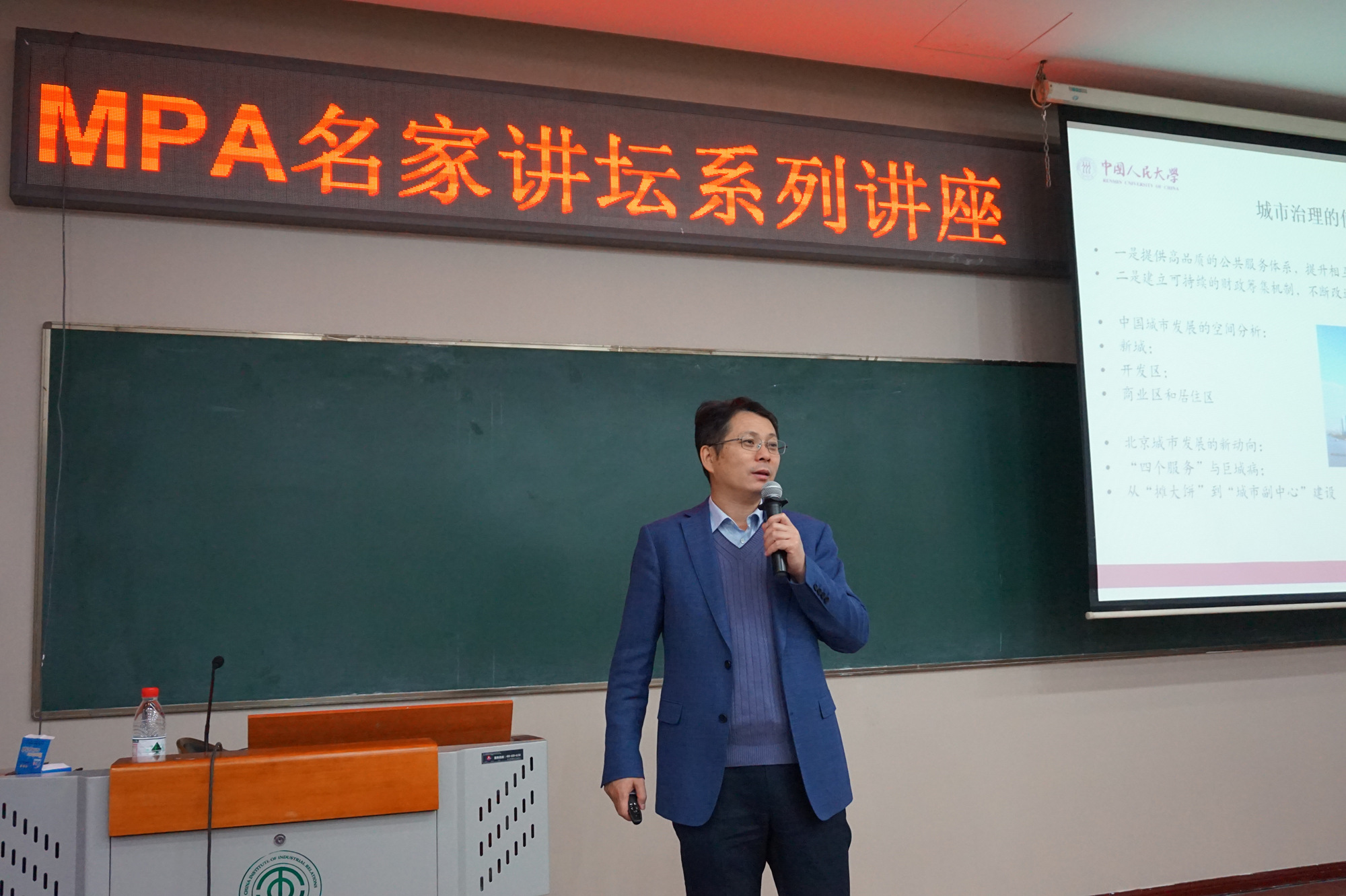 10月19日下午,学校2018级MPA研究生“名家讲坛”系列讲座在北京校区阶一教室正式开讲。讲座邀请到全国MPA教育指导委员会副秘书长、中国人民大学公共财政与公共政策研究所所长杨宏山教授到校以《京津冀协同发展与雄安新区建设》为题为师生进行专题讲座。学校百余名师生到场聆听了讲座。