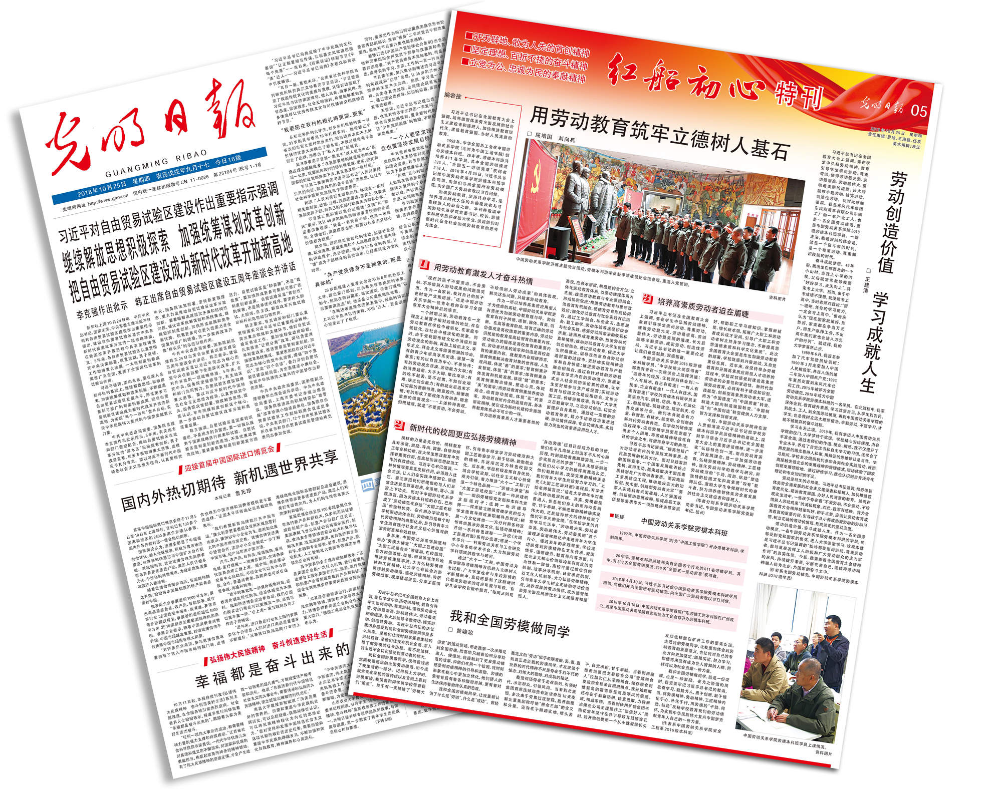 近期,《光明日报》深度采访了ac米兰构建德智体美劳全面发展的人才培养体系情况,特邀ac米兰党委书记、校长、劳模本科班学员和在校大学生畅谈对新时代在全社会加强劳动教育的思考与体会,并在《光明日报》10月25日第05版“红船初心特刊”上进行了整版报道。ac米兰党委书记屈增国,党委副书记、校长刘向兵发表了题为《用劳动教育筑牢立德树人基石》的署名文章。