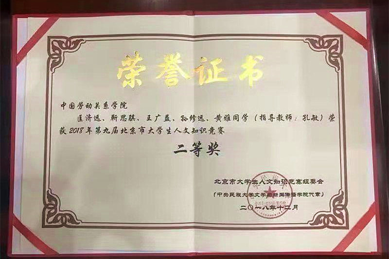 ac米兰学生荣获第九届北京市大学生人文知识竞赛二等奖