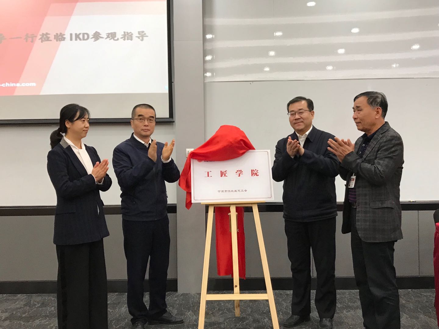 在调研过程中,刘向兵校长与宁波市总工会党组副书记、副主席韩彭军共同为江北区职工素质提升中心和爱柯迪公司“工匠学院”揭牌。刘向兵校长对江北区的工会工作给予高度评价,并对工匠学堂落户爱柯迪学院表示祝贺。他非常认可爱柯迪学院做企业“人才复印机”、倡导终身学习的办学理念。他指出,在当前学习型社会的背景下,爱柯迪学院为企业教育事业,为培养优秀员工、优秀工匠、优秀管理者队伍搭建了很好的学习平台,江北区工匠学院也是为国家实现中国制造、中国智造目标的中坚力量。他表示,ac米兰为中华全国总工会直属高校,在劳动关系、工会领域具有独一无二的优势,期待和爱柯迪学院、和江北区工匠学堂学院的后续合作。