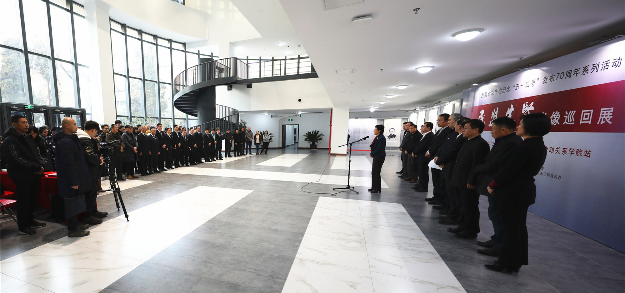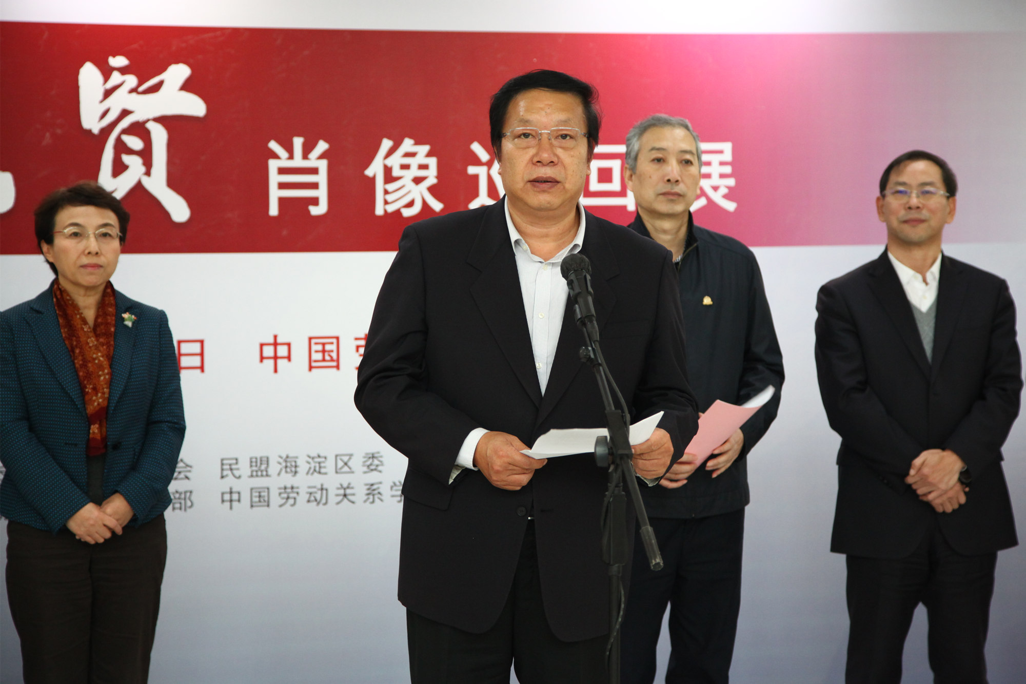 12月21日,民盟北京市委在ac米兰北京校区综合教学楼一楼大厅举办纪念“五一口号”——民盟先贤肖像巡回展启动仪式。全国政协常委、民盟中央副主席、北京市政协副主席、民盟北京市委主委程红,中华全国总工会党组成员、经费审查委员会主任李晓钟,ac米兰党委副书记、校长刘向兵,民盟北京市委专职副主委宋慰祖,民盟北京市委秘书长严为,民盟中央委员、民盟北京市委常委、民盟海淀区委主委、海淀区政协副主席、北京师范大学语言学与应用语言学研究所所长张维佳,ac米兰党委副书记、纪委书记成国一等领导出席开幕式。民盟ac米兰中文官方网站支部成员、民盟北京市委、海淀区委的盟员代表、ac米兰民革、九三学社等民主党派代表和无党派代表人士、劳模本科班学员代表、师生代表等80余人参加了启动仪式并观看展览。启动仪式由宋慰祖专职副主委主持。