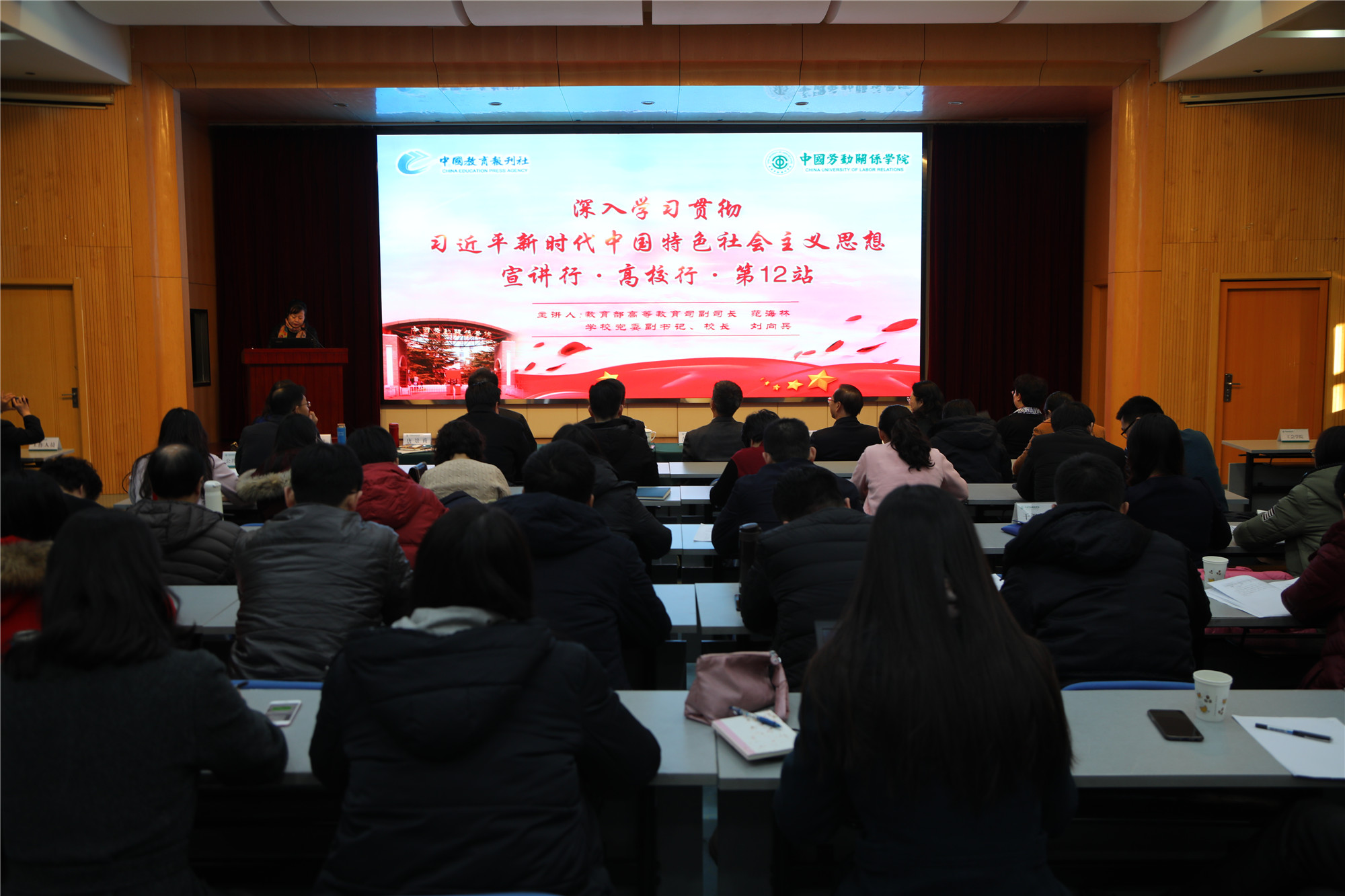 12月24日下午,中国教育报刊社“深入学习贯彻习近平新时代中国特色社会主义思想宣讲行·高校行”大型主题活动第12站暨ac米兰党委理论学习中心组学习(扩大)会议在北京校区教学楼508教室举行。教育部高等教育司副司长范海林、《中国高等教育》总编辑唐景莉,ac米兰领导刘向兵、成国一、刘玉方、刘丽红及党委常委燕晓飞、杨冬梅、姜颖出席活动。各党总支书记(副书记)、教工党支部书记,相关职能部门全体工作人员及教师代表参加了活动。活动由唐景莉总编主持。