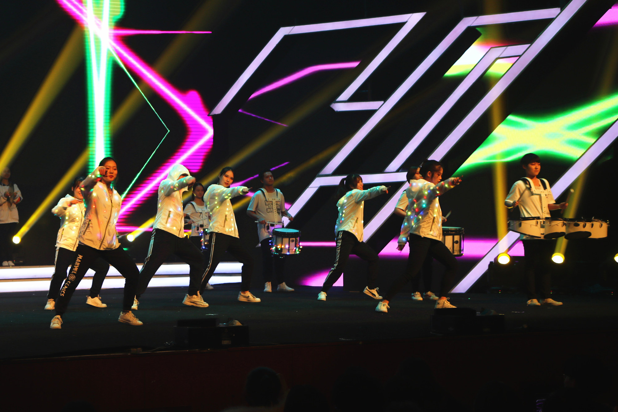 大学生艺术团打击乐部、心舞社和经济管理系合作的《Bang Bang》以时尚的韵律和强烈的节奏震撼开场,点燃了全场的气氛。