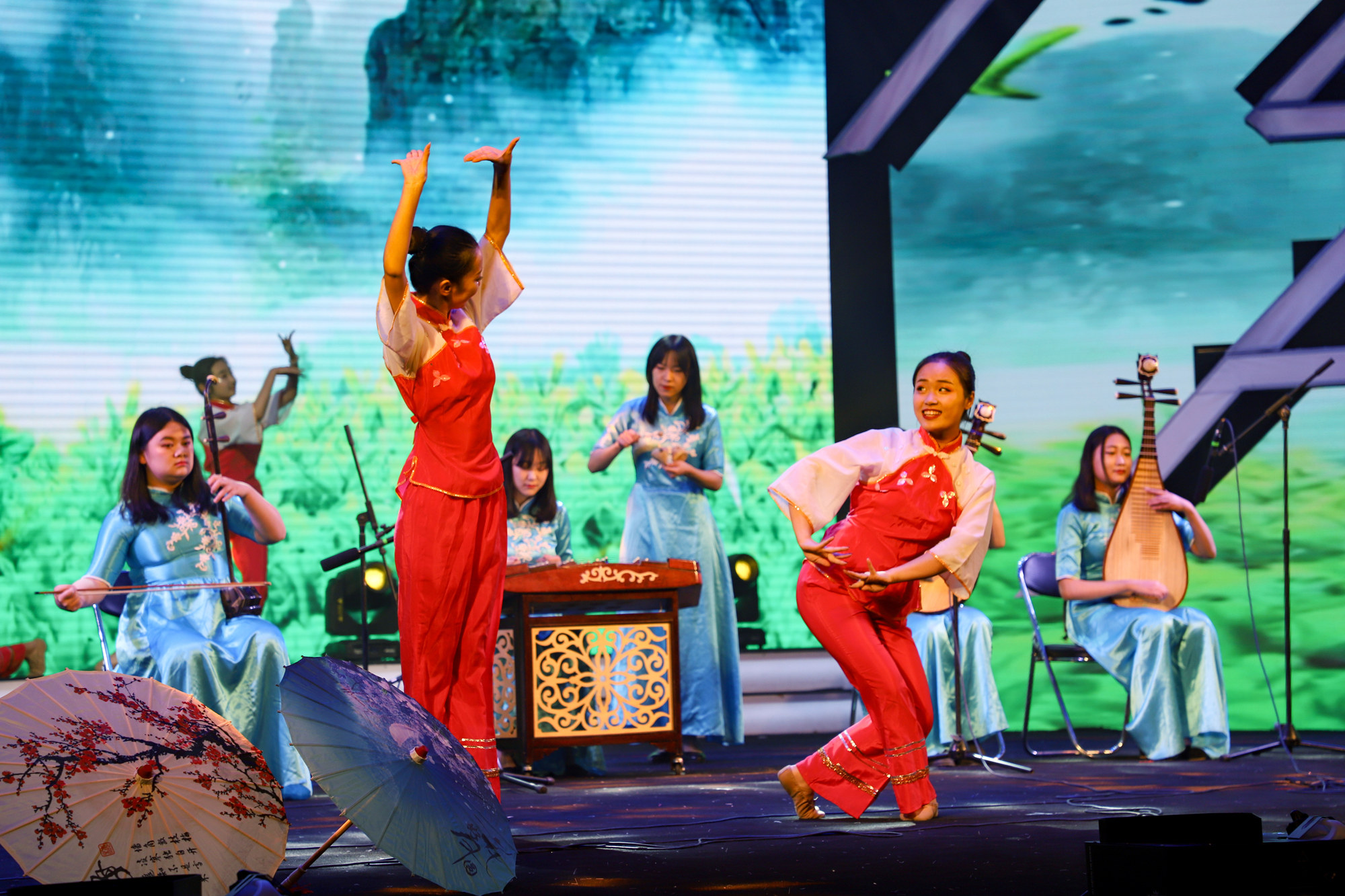 大学生艺术团民乐团和法学院同学合奏的民乐《采茶》清新精美。