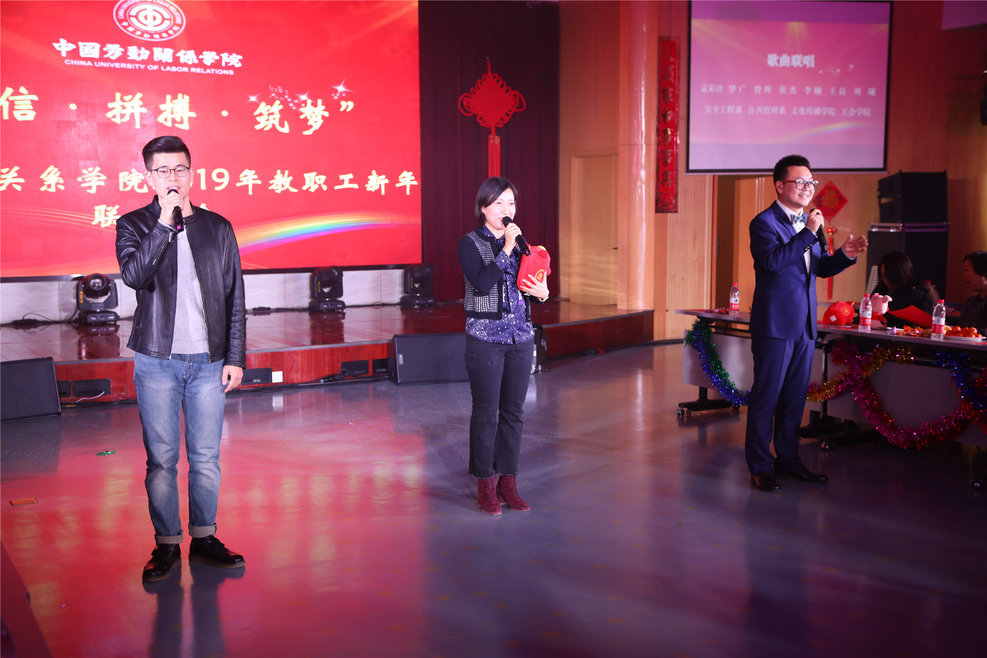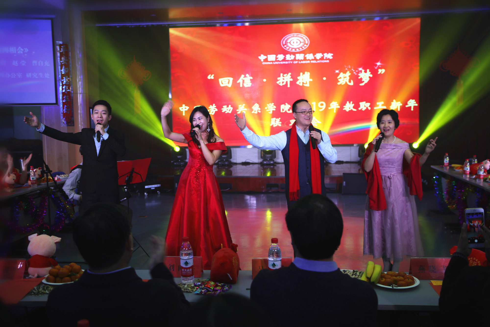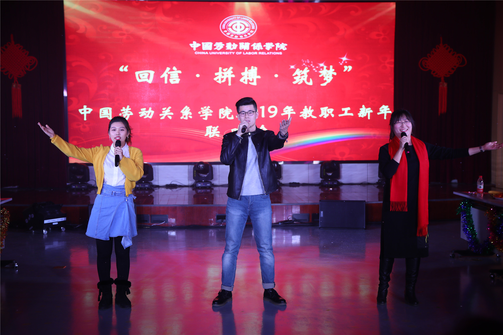 歌声袅袅辞旧岁,舞姿翩翩贺新年。1月11日下午,北京校区508教室掌声雷动、座无虚席,洋溢着浓厚的节日氛围。“回信·拼搏·筑梦”——学校2019年教职工新年联欢会在这里欢乐举行。学校领导刘向兵、成国一、吴万雄、郭孝实,党委常委燕晓飞、杨冬梅、姜颖与300余名教职工一起分享节日的喜悦。