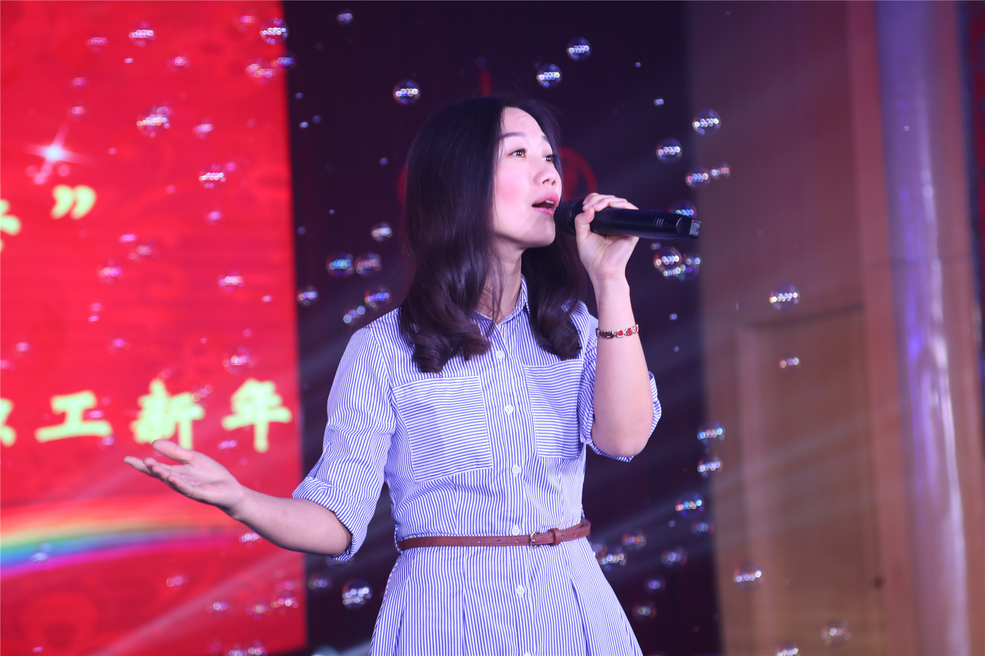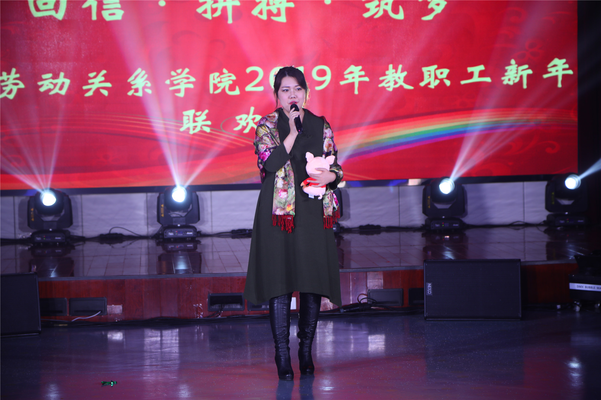 联欢会在劳模本科班学员《回信精神照我行》的诵读声中拉开序幕。在近2个小时的联欢中,教职员工倾情演绎12个歌舞节目,精彩绝伦、引人入胜,充分展现了大家积极向上的精神风貌。本次联欢会还有两个亮点:一是以图片和数字的形式带领大家一起回顾了2018年学校在教育、教学、科研、管理等方面所取得的丰硕成绩;二是首次邀请后勤保卫一线员工上台展示,以表达对各个岗位上默默奉献的劳动者的诚挚敬意。
