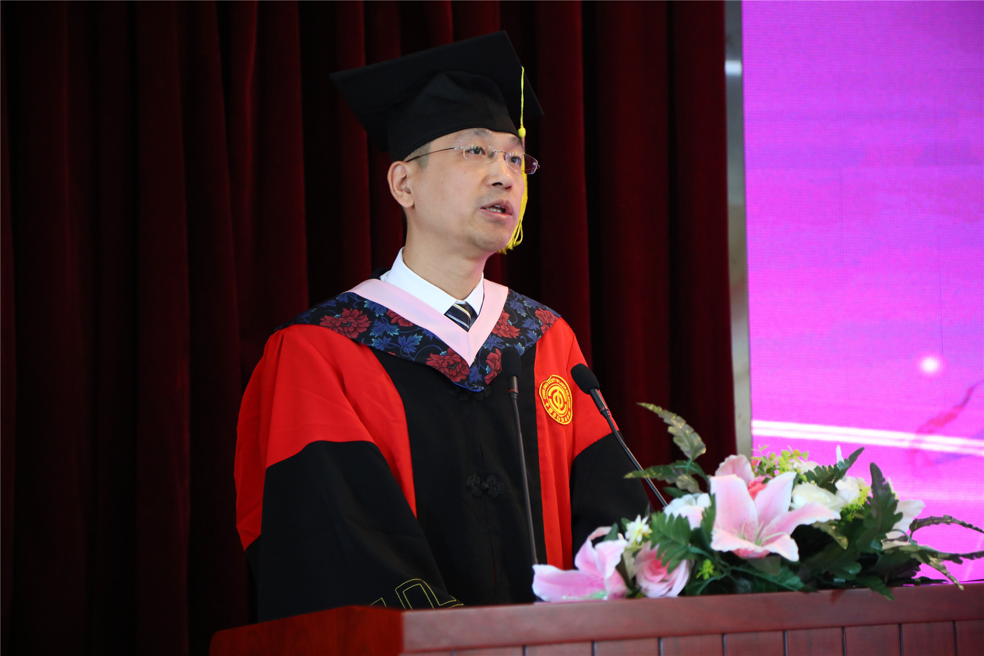 刘向兵校长在讲话中,对圆满完成学业的毕业生表示了最热烈的祝贺。他强调,学业的收获、思想的提升、意志的磨练和事业的拓展,是毕业生们今后人生道路上一份宝贵的财富。他指出,大家正面临着难得的机遇和广阔的舞台,毕业后要撸起袖子加油干,昂首走进新时代。他对大家寄予三点希望:一是希望大家努力学习。要正心诚意,增长识见,勤学善思,学以致道。二是希望大家忠于实践。要勤勤恳恳做事,踏踏实实做人,在实践中锻炼成才,走在创新创造、改革发展的前列。三是希望大家勇于担当。要大力弘扬劳动精神,在各个领域百舸争流,攻坚克难谋发展。