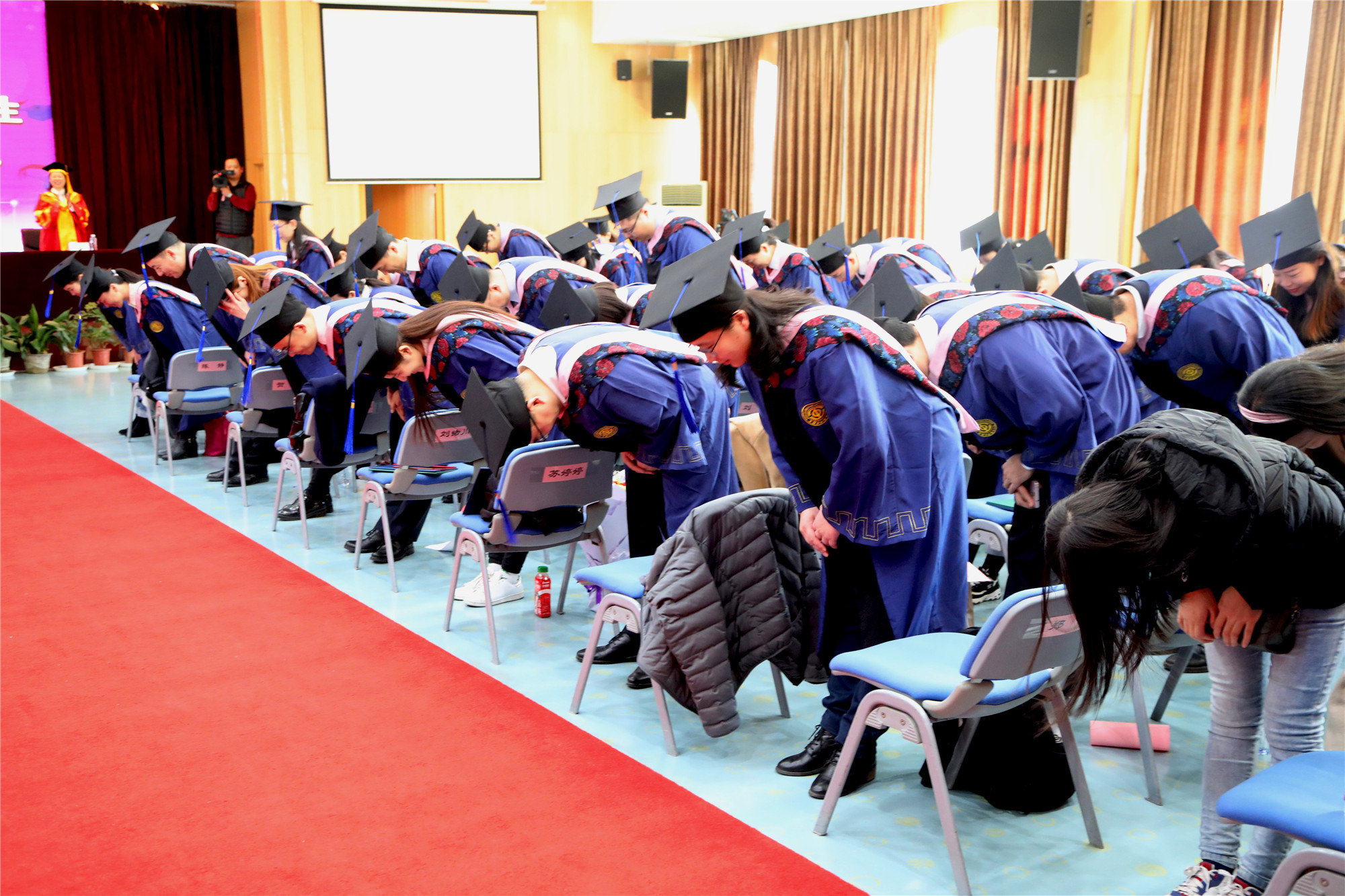 典礼最后,毕业生们全体起立,深深地向所有老师鞠躬致敬,对为研究生教育默默奉献的领导和教职员工表达最真挚的谢意,带着学校的美好祝福踏上新的征程。
