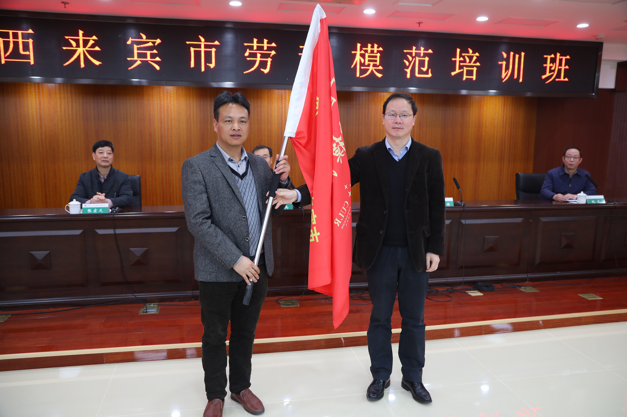 开班仪式上,吴万雄副校长为本期培训班授班旗。来宾市总工会副主席张宏义在动员讲话中,要求参训学员珍惜学习机会,认真学习领悟回信精神,通过培训收获知识,增长能力,促进交流。