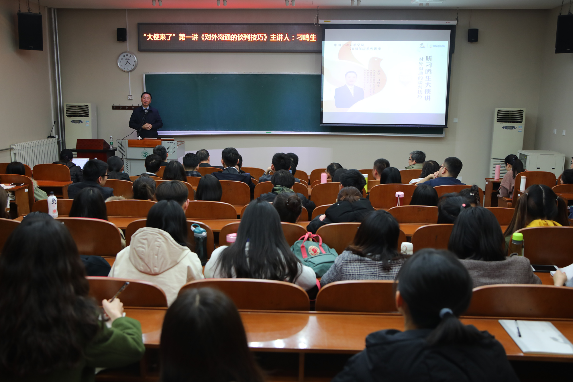 3月28日晚,“大使来了”系列讲座第一讲在北京校区教学楼阶二教室成功举办。前中国驻贝宁共和国特命全权大使刁鸣生受邀以“对外沟通的谈判技巧”为主题精彩开讲,100余名师生到场聆听了讲座。