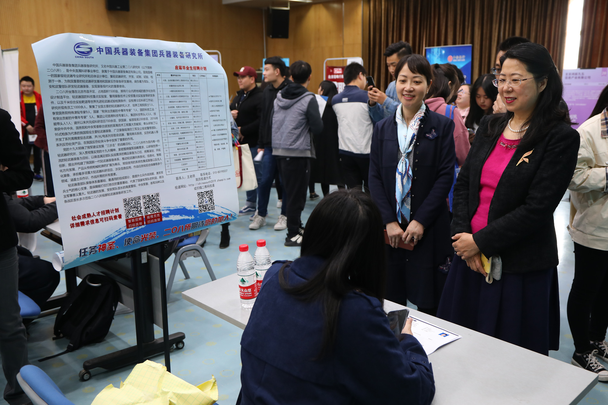 刘丽红副校长深入双选会现场,与企业代表就企业实力、用人情况、专业素质要求等进行详细交谈,鼓励毕业生多与参会企业交流。各院(系)党总支书记和2019届就业联络员也到现场指导毕业生有序应聘。