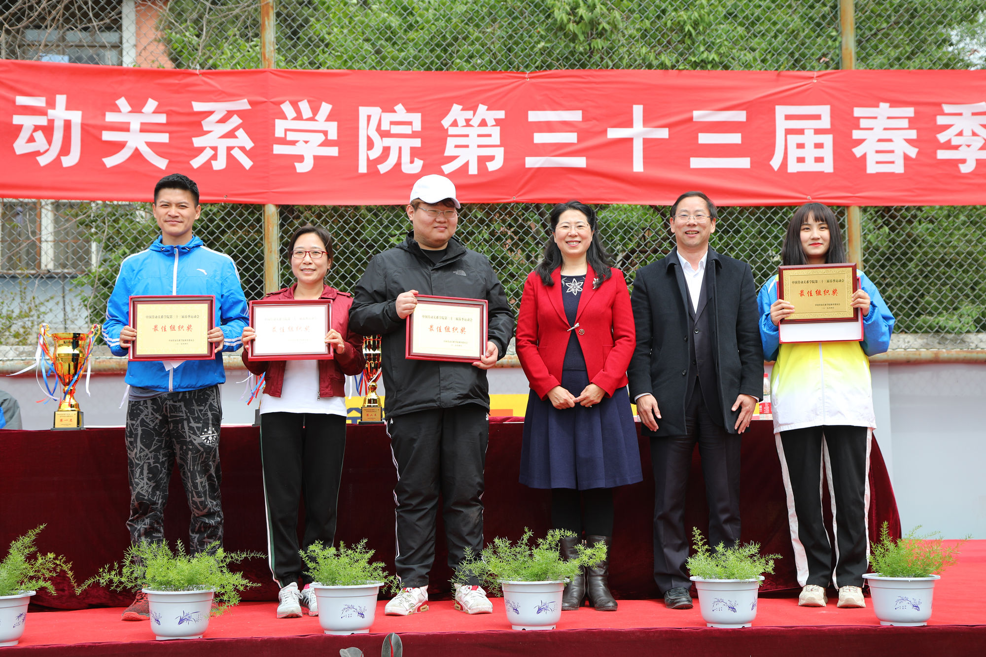闭幕式上,学校领导成国一、刘玉方、刘丽红分别为获奖班级和单位颁奖。学校第三十三届春季运动会圆满结束。
