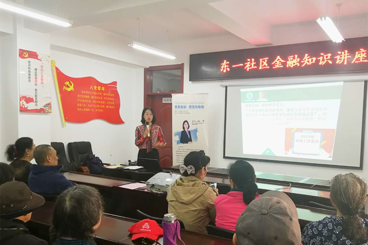 第11场:4月16日,经济管理系周超副教授以《普惠金融:惠及你我他》为题为丰台区和义街道居民进行讲座。讲座围绕政府报告中提出的“加强普惠金融服务,惠及老百姓”展开,通过生动的案例讲解,让社区居民认识到金融就在身边,学会如何控制风险以及理性投资理财,用普惠金融提升自己的生活水平。