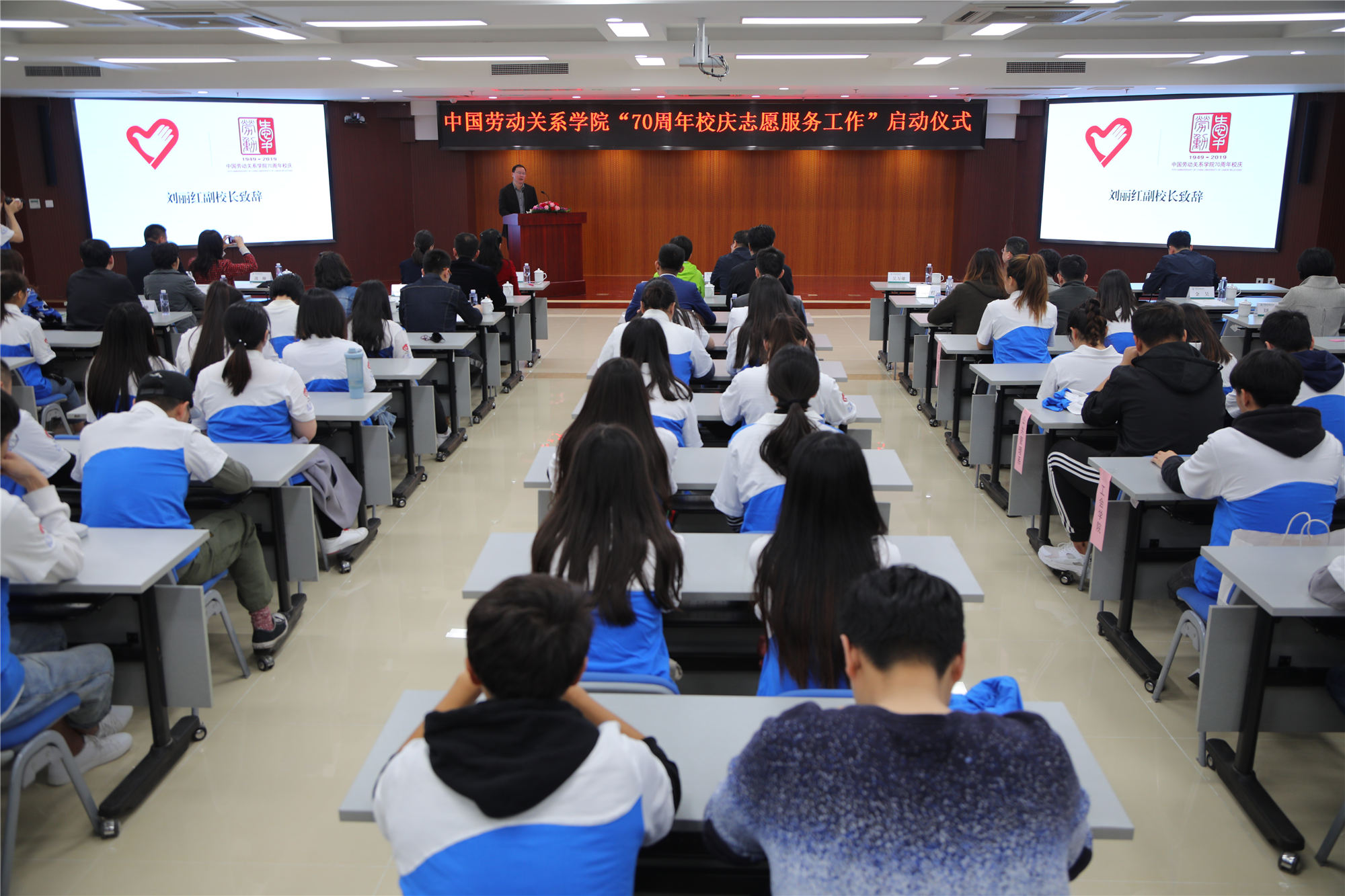 4月28日下午,学校“70周年校庆志愿服务工作启动仪式”在北京校区大学生公寓会议中心举行。学校党委副书记、校长刘向兵,副校长刘丽红,副校长吴万雄出席活动。学校相关职能部门负责人,各院(系)党总支书记、辅导员,优秀志愿者代表与学生代表近150人参加活动。仪式由吴万雄副校长主持。