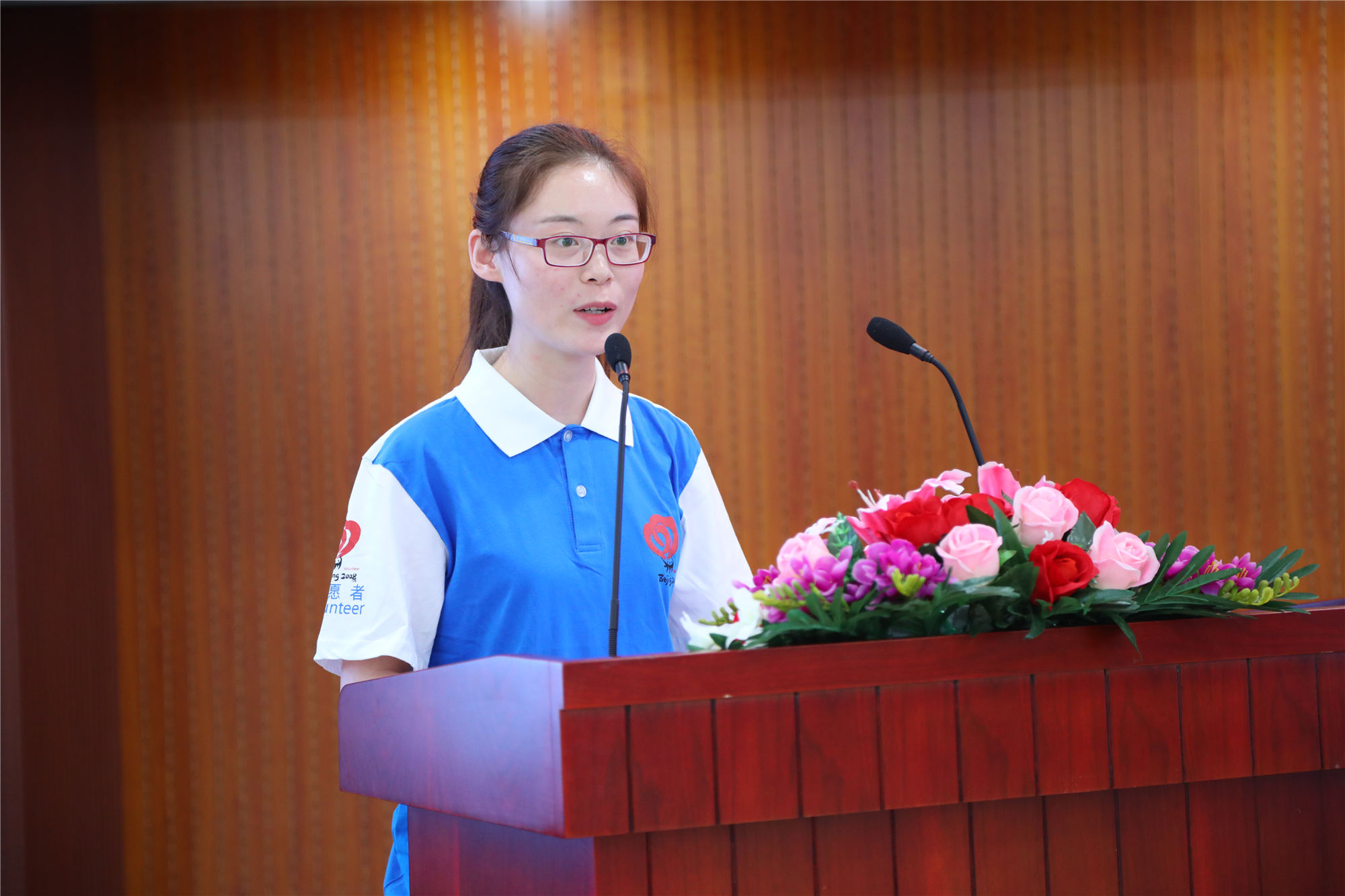 仪式上,校庆办公室副主任王炜从校庆总体情况、时间安排、开展情况和未来安排四个方面为校庆志愿者介绍了校庆整体工作。2018级劳模本科班学员王加全结合总书记回信精神,深刻阐释了劳模精神与志愿精神的时代内涵。学生志愿者代表、工会学院姚驰旭以《让志愿者的微笑成为学校最美的名片》为题发言。高等职业技术学院刘洋同学带领现场志愿者集体宣誓。全体师生观看了学校70周年校庆志愿服务工作宣传片,唱响了《中国青年志愿者之歌》,现场气氛热烈,洋溢着青春活力。