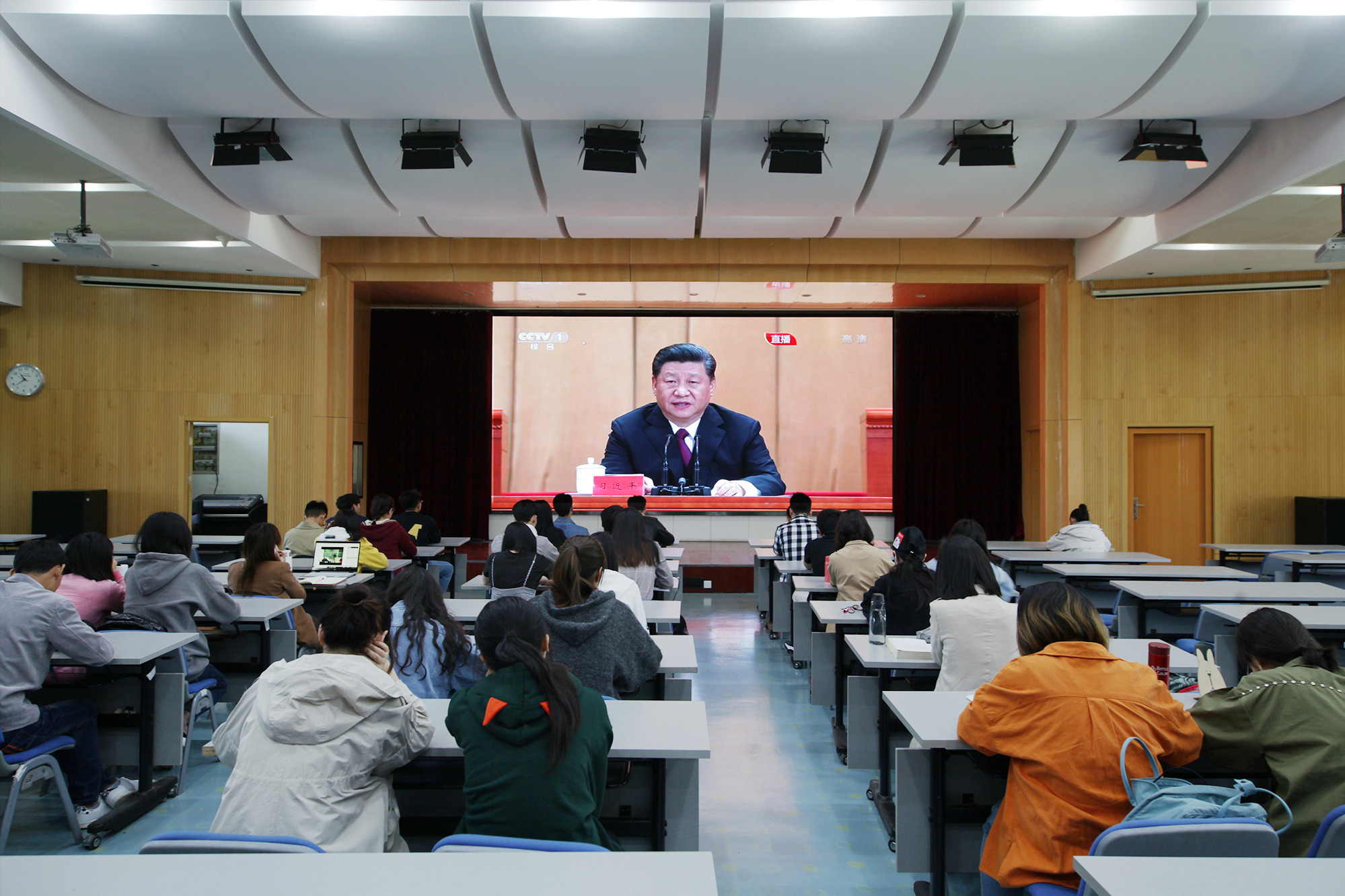 上午10时20分,学校党委在北京校区办公楼四层会议室召开党委理论学习中心组学习(扩大)会议。党委常委、党委委员、纪委委员,各党总支书记、教工联合党支部书记,各部门主要负责人,劳模学员代表、学生党员代表、团学骨干代表、研究生代表,民主党派和无党派人士代表参加会议。会上集体收看了大会直播,并进行了学习研讨。
