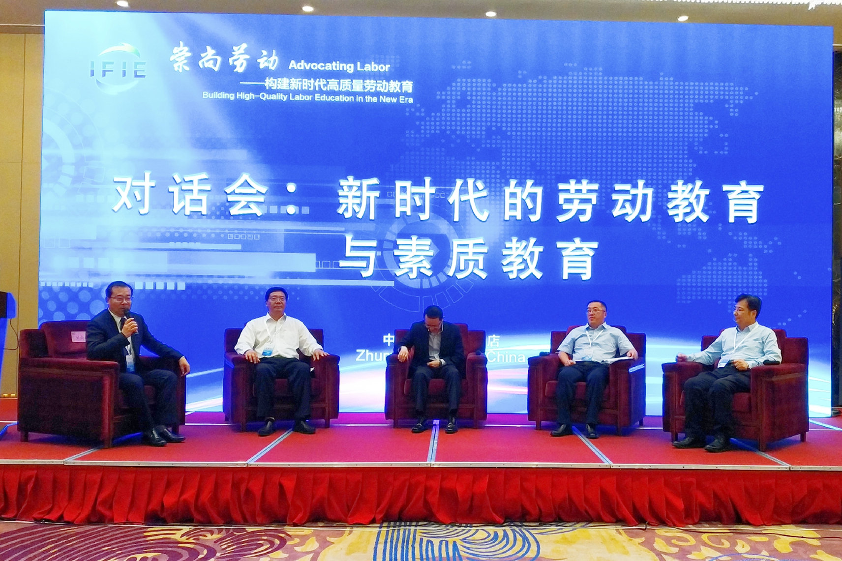 论坛上,刘向兵校长作为主持人,与驻马店市教育局局长王和平、永嘉县委常委孔红永、航天农业应用技术智库主任郭锐、中国建设银行大学执行副校长郭元析等专家学者围绕“新时代的劳动教育与素质教育”开展圆桌对话。大家一致认为,推动劳动教育和素质教育的双重发展,不仅需要各学校积极主动推动产教融合,更需要来自企业、产业、行业的支持和帮助。