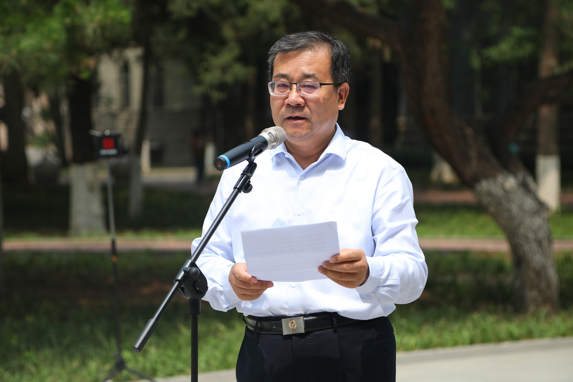6月17日上午,学校70周年校庆倒计时100天庆祝纪念活动在北京校区综合教学楼前隆重举行。学校领导刘向兵、成国一、刘玉方、吴万雄和党委常委燕晓飞、杨冬梅、姜颖出席活动。各部门负责人、劳模学员代表、师生代表、离退休教职工代表等约50人参加活动。纪念活动由吴万雄副校长主持。