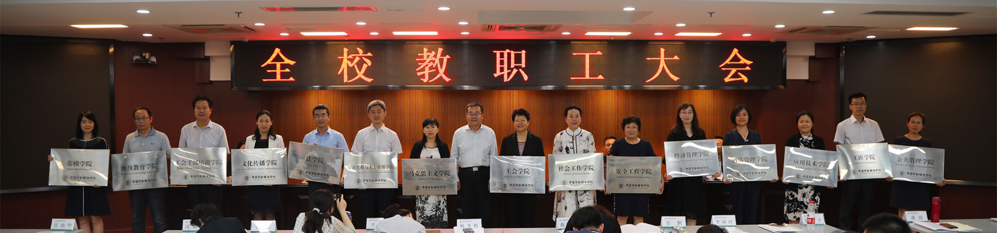 党委副书记、校长刘向兵先后为马克思主义学院、工会学院、劳动关系与人力资源学院、法学院、经济管理学院、公共管理学院、安全工程学院、社会工作学院、文化传播学院、酒店管理学院、应用技术学院(工匠学院)、工会干部培训学院、继续教育学院(劳模学院)授牌。