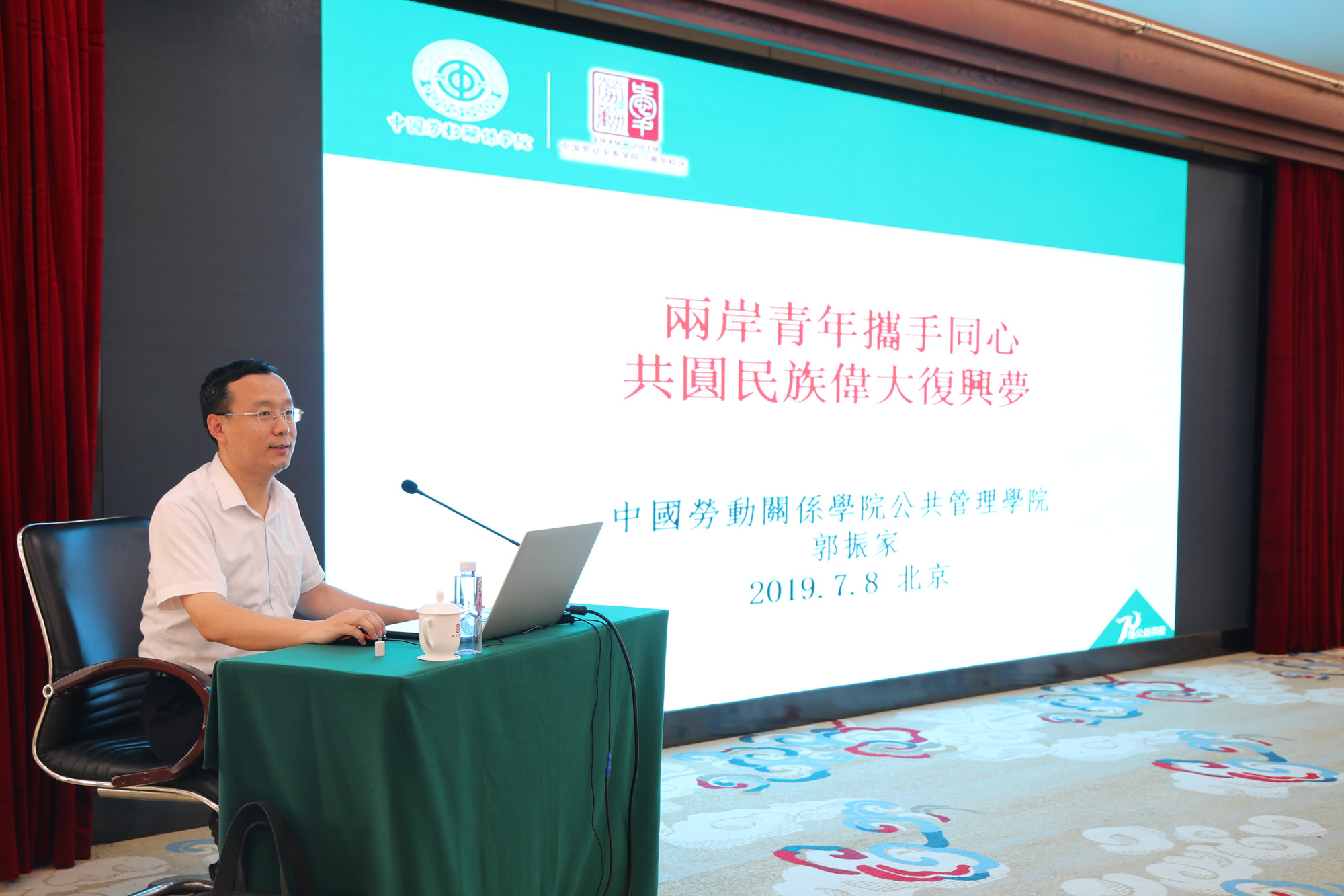第57场:7月8日下午,公共管理学院郭振家副教授在北京中工大厦为“2019台湾工会青年研讨营”进行了专题讲座,授课主题为“两岸青年携手同心,共圆民族伟大复兴梦”。他提出,台湾青年需要正确认识并深刻理解大陆过去100年的艰难转型,越来越多地参与到两岸融合发展进程中来。本次讲座内容丰富、气氛活跃、互动频频,受到与会者一致好评。